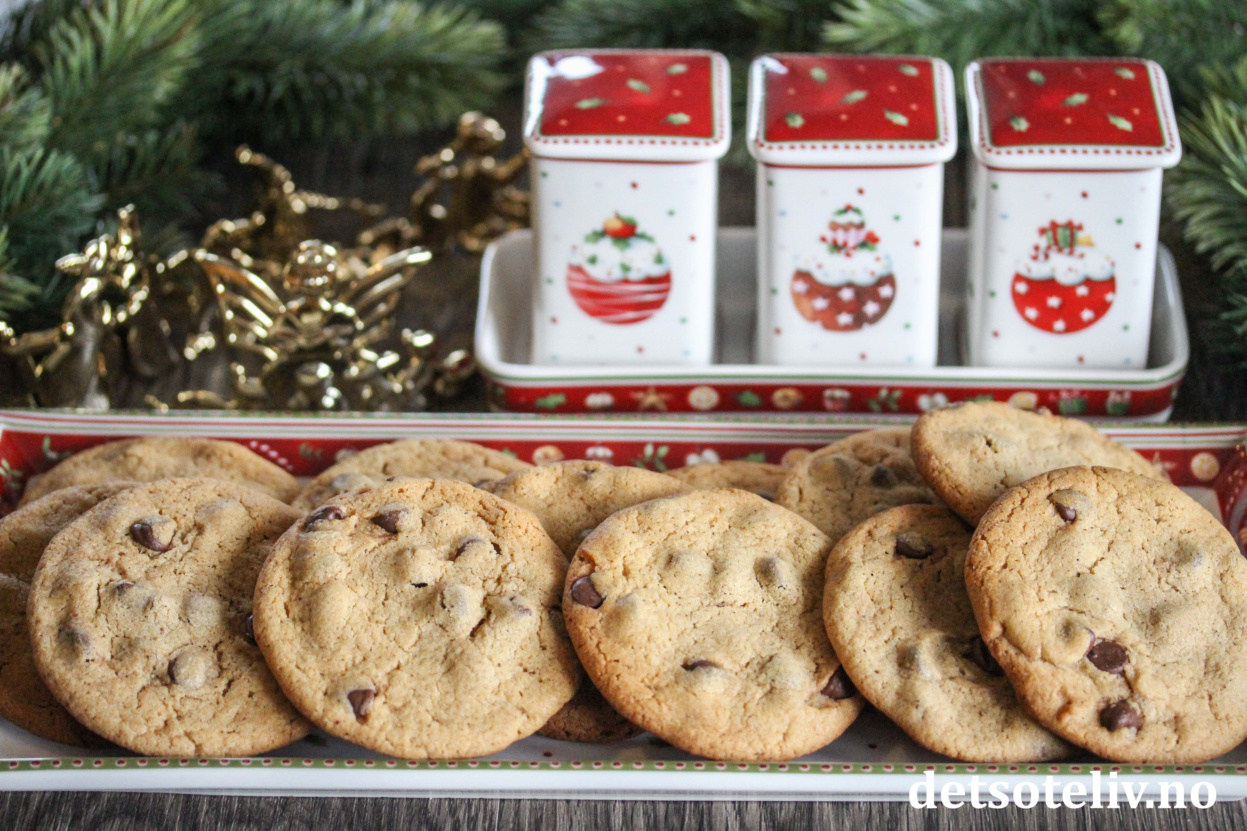 Sjokoladecookies er veldig populære kaker, og det har blitt mer og mer vanlig å inkludere dem i julebaksten. Her er en variant med julekrydder som gir herlig pepperkakesmak på kakene, i tillegg til at de inneholder nøtter og sjokoladebiter.