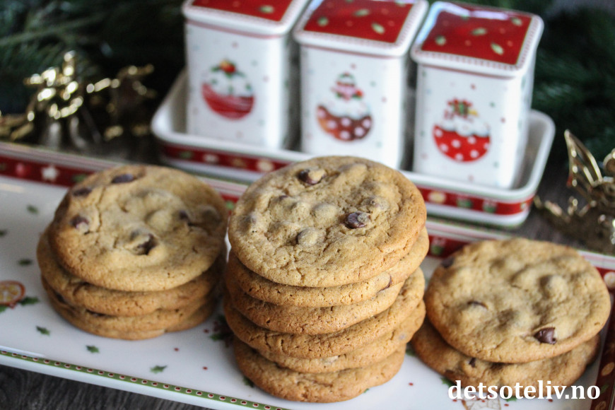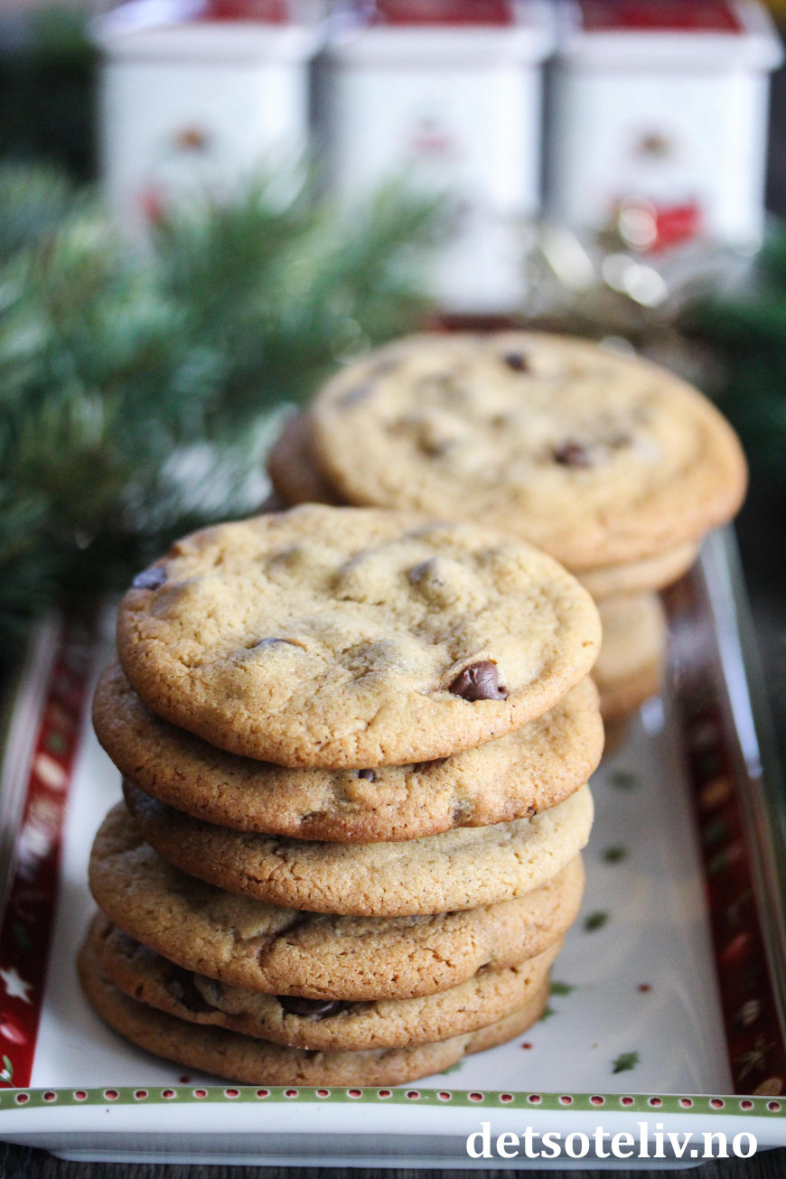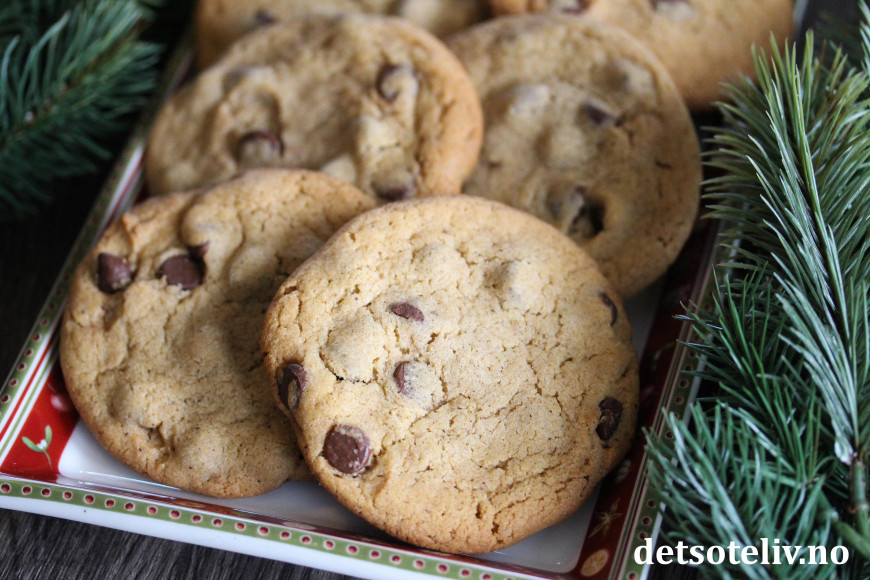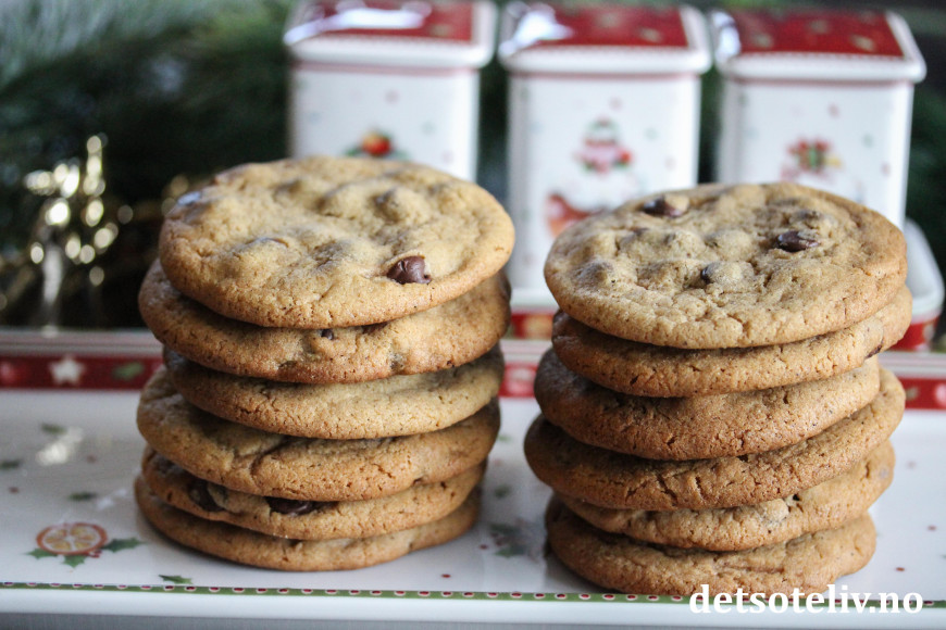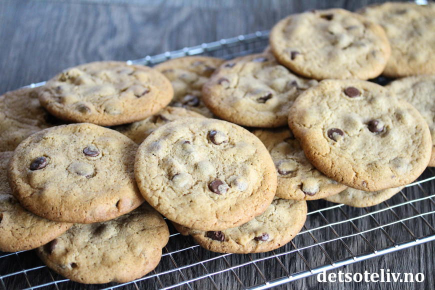 Dette er sånne sjokoladecookies som det rett og slett er vanskelig å slutte å gomle på! Kakene inneholder sirup i deigen, som gjør at de får en deilig og akkurat passe seig konsistens.