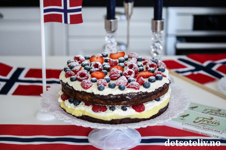 Dette er en flott sjokoladefestkake som passer til alle vårens feiringer, og spesielt godt til 17. mai!