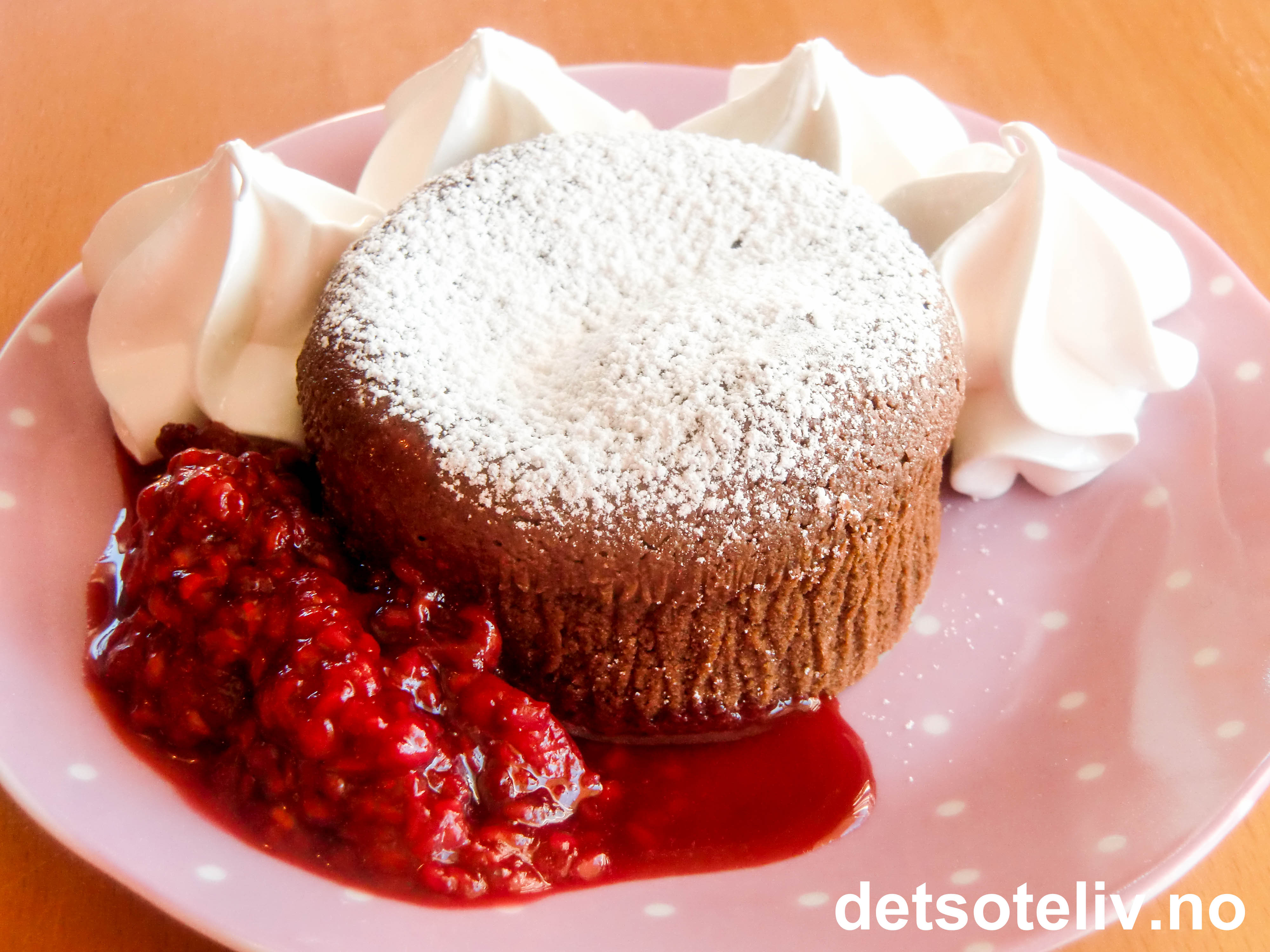 Sjokoladefondant er den desserten som lages oftest hjemme hos meg, og jeg elsker å variere med litt ulike smaker. Mannen min spør ofte om jeg kan lage sjokoladefondant på kvelden (og jeg sier selvfølgelig aldri nei til det 😉 ), og det som er så fint med sjokoladefondant er at det tar maks 20 minutter fra han spør til vi begge sitter i stuen med hver vår varme fondant på fanget. 😋 Her laget jeg en med brandy og noen bringebær servert med rørte bringebær og fantastisk god marengskrem!