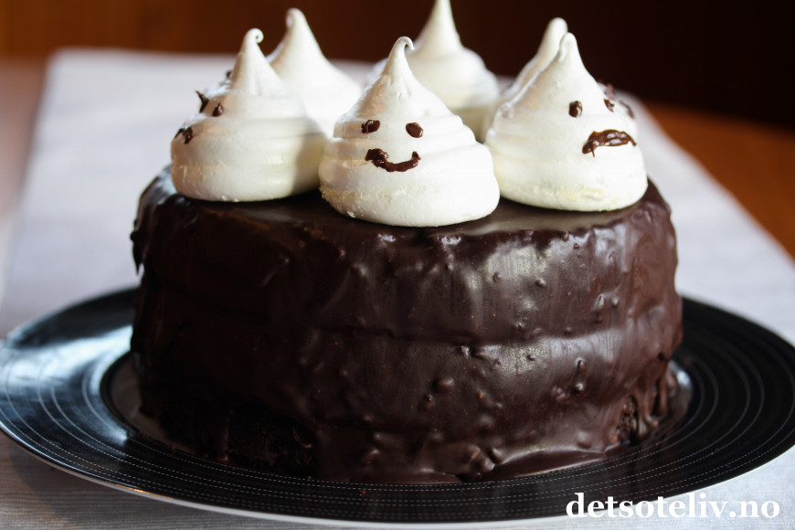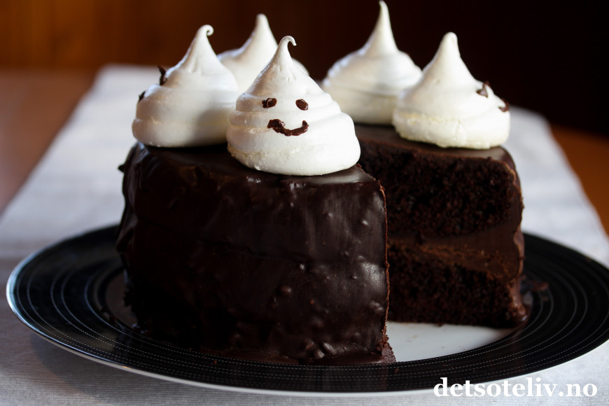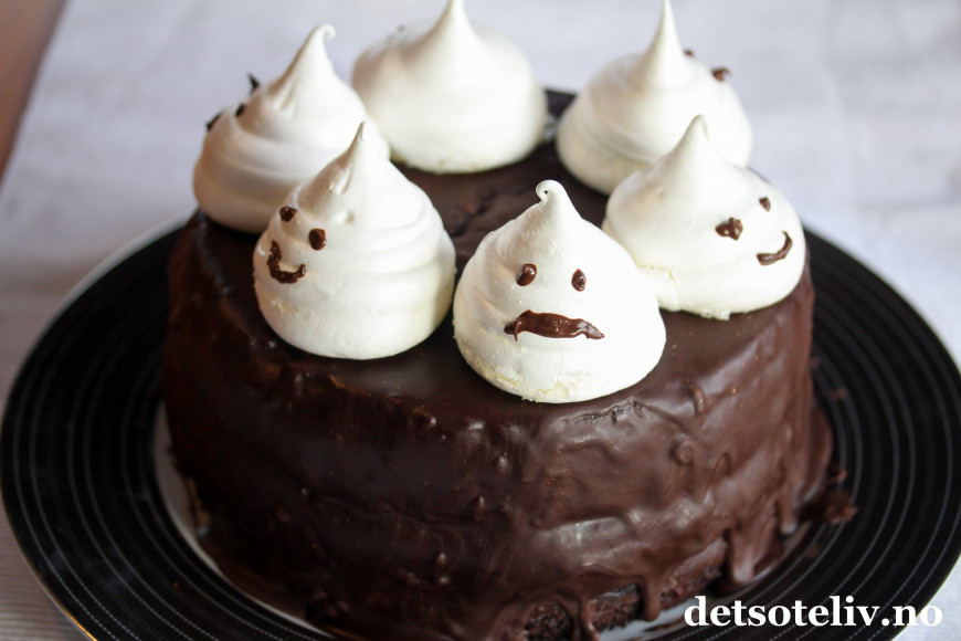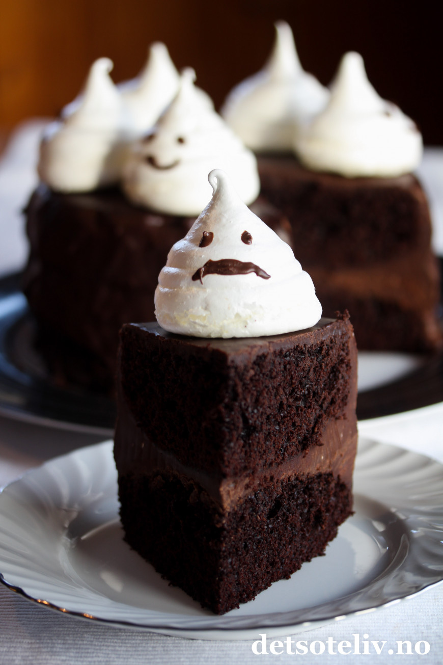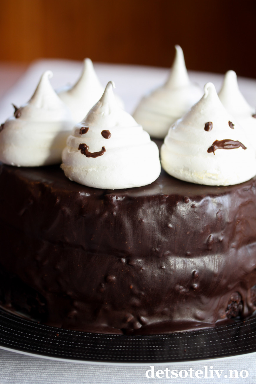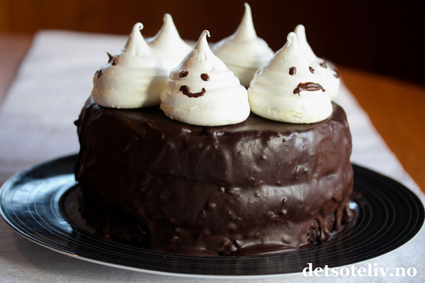 ♥ Og selvsagt er denne kaken fin å lage hele året. Det er jo bare å droppe spøkelsesmarengsene på toppen.