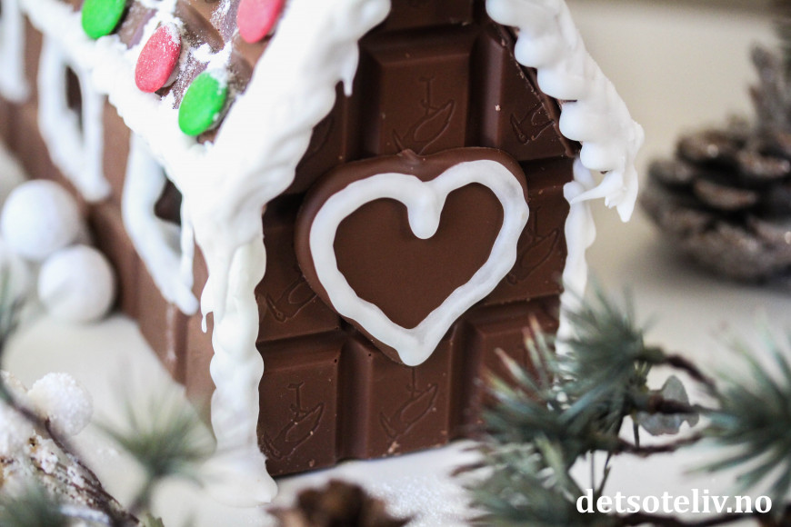 ♥ Det går fint å oppbevare sjokoladehuset og den tilhørende sjokoladedekorasjonen i romtemperatur.