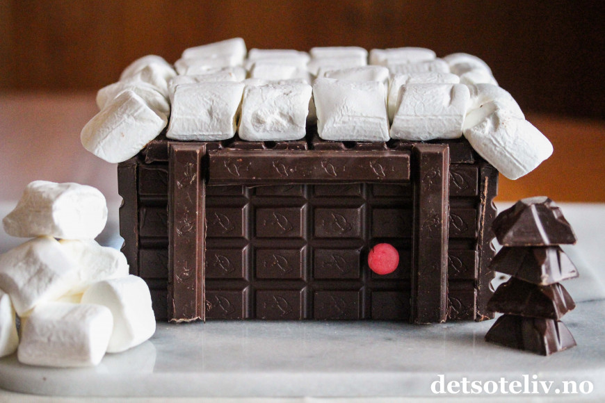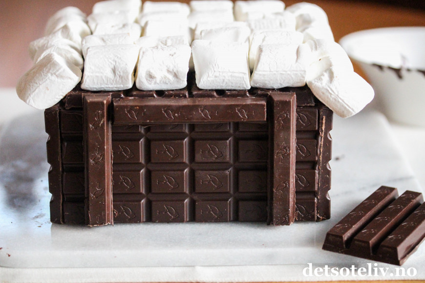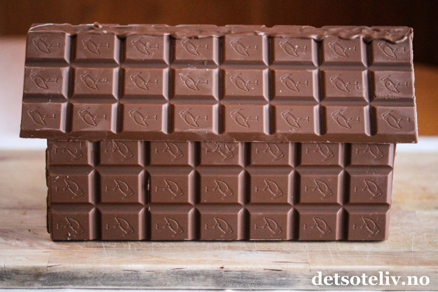 ♥ Det går fint å oppbevare det ferdige sjokoladehuset i romtemperatur.