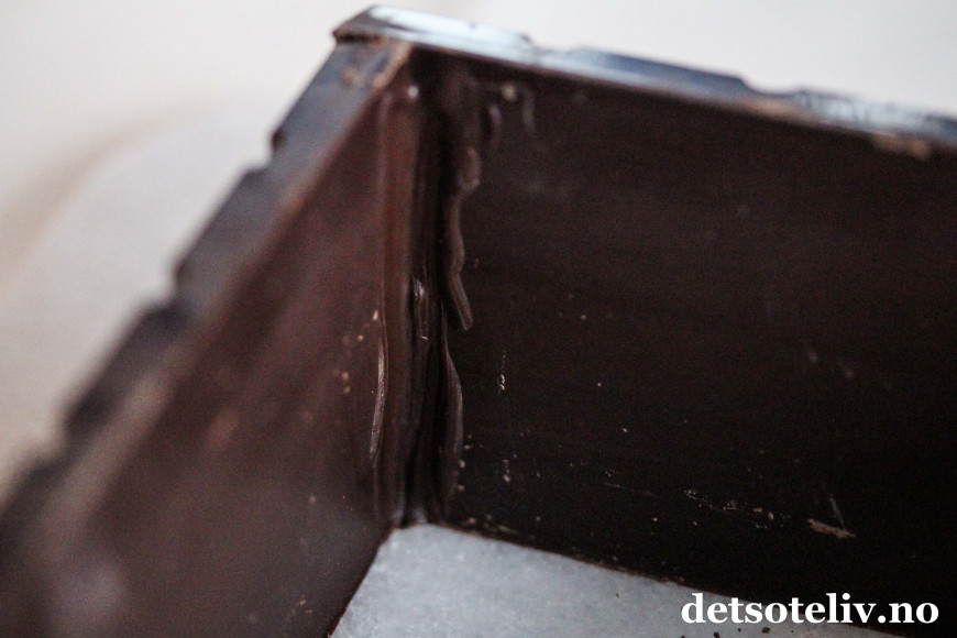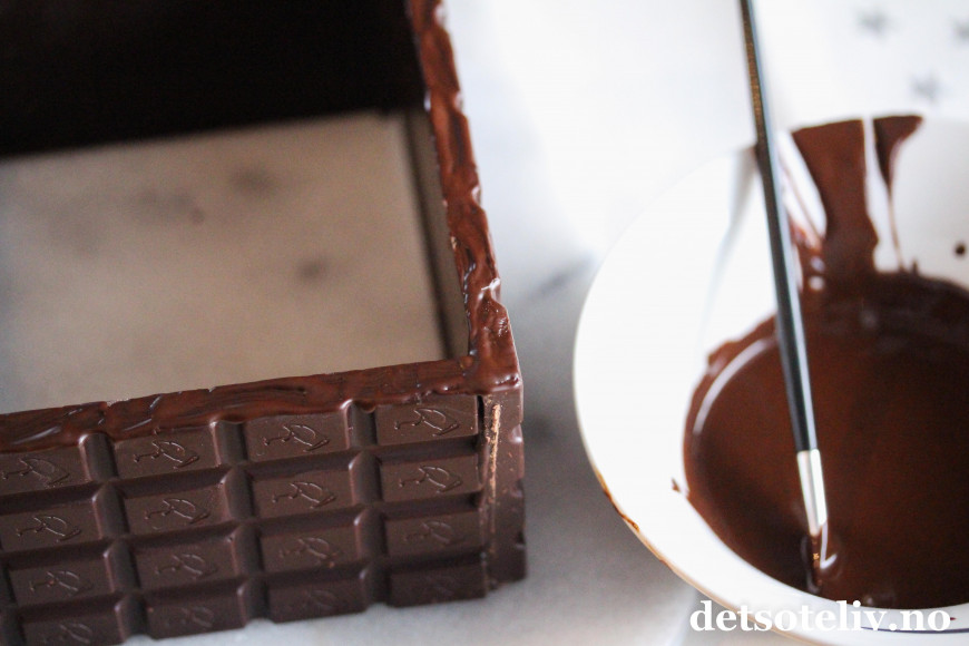 Så penslet jeg over hele taket med mer smeltet sjokolade.