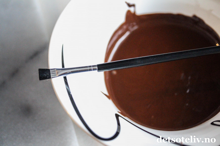 Så penslet jeg kantene på toppen med smeltet sjokolade.