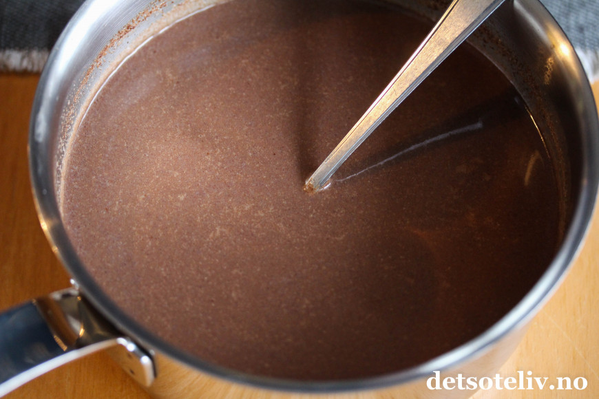 ♥ Bruk sterk og god kaffe. Jeg brukte 2 ts kaffepulver i 3 dl kokende vann, som ga nydelig smak på sjokoladekaffen. God espresso eller traktekaffe kan selvsagt også brukes.