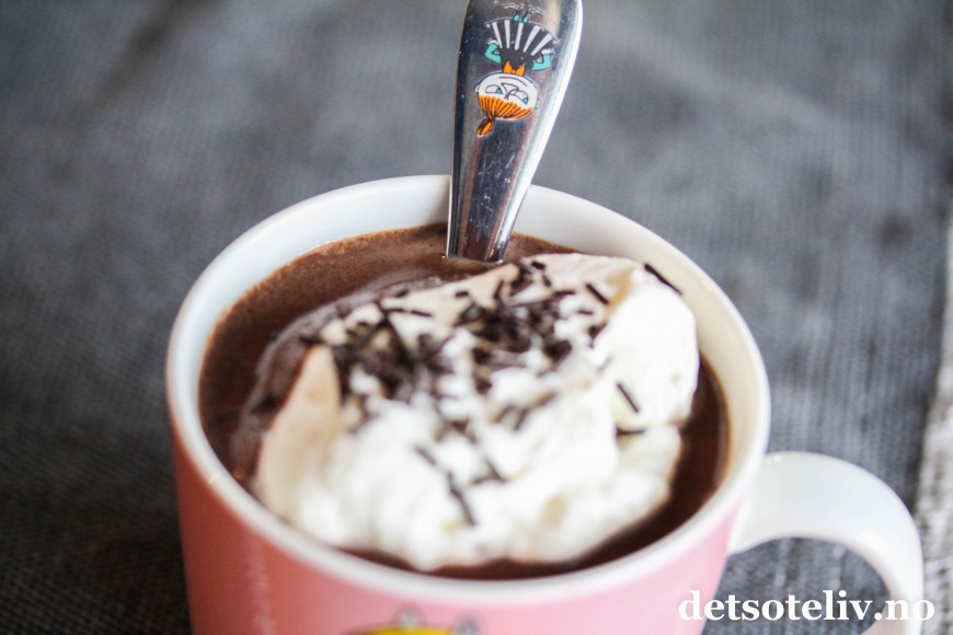 Men her altså først oppskrift på sjokoladekaffe med krem, som er en nytelse å kose seg med i solveggen.