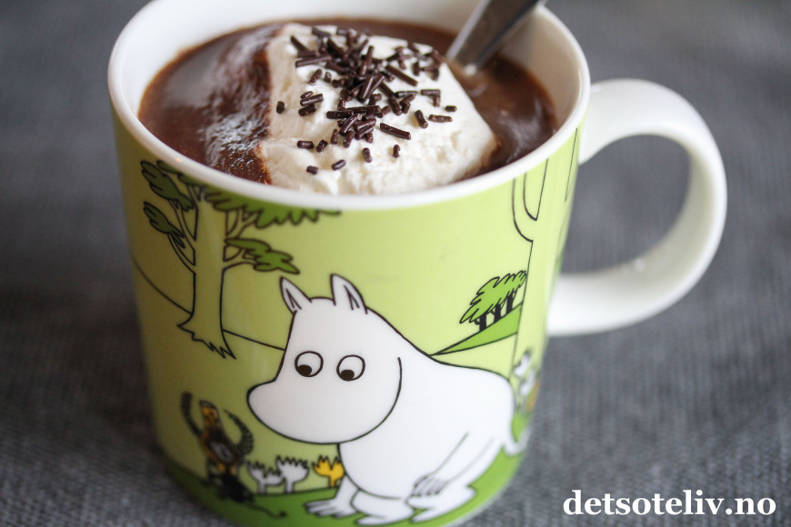 Ekstra luksus får du om du pisker kremfløte og vaniljesukker til myk krem og legger en klatt på toppen av koppen før servering.