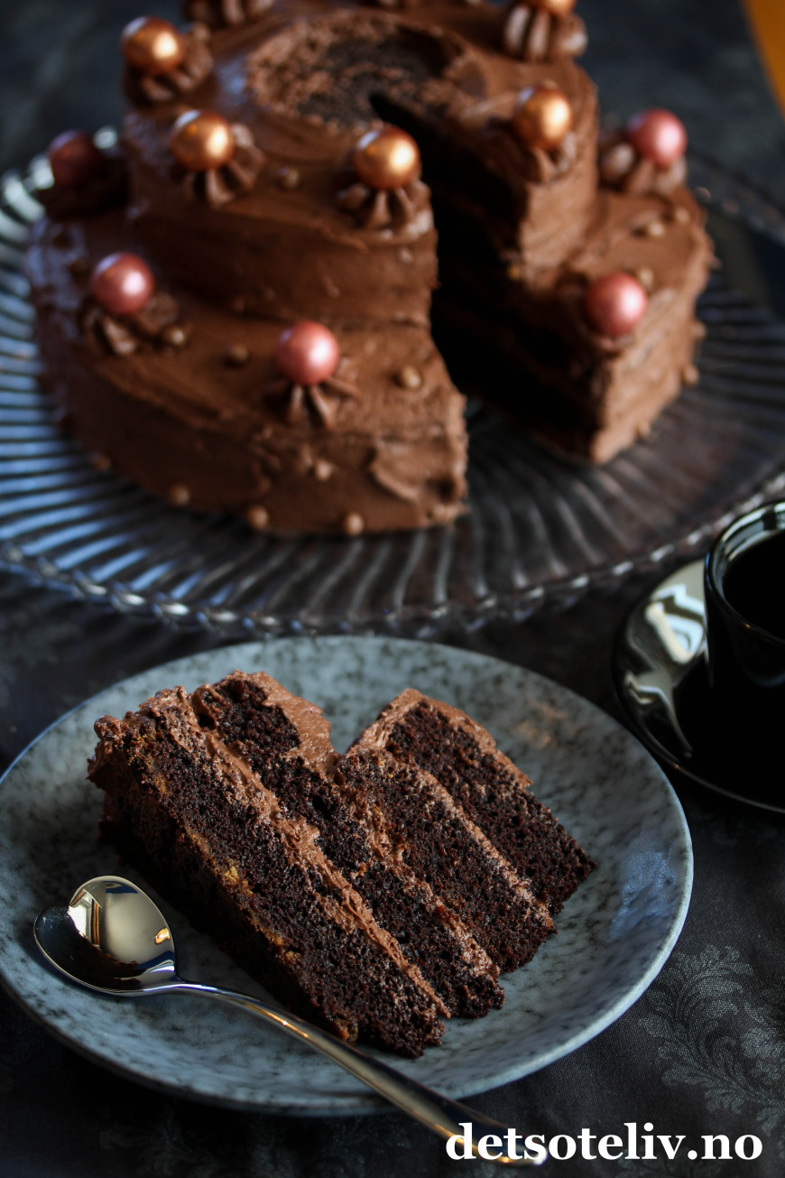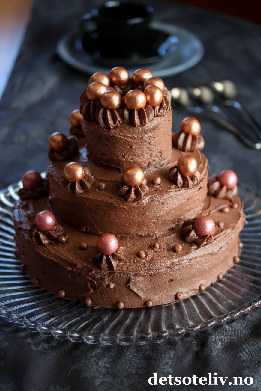 En kake i 3 etasjer ser kanskje uoverkommelig vanskelig ut å lage, men neida - dette er ikke noe vanskeligere å lage enn en helt vanlig sjokoladekake.