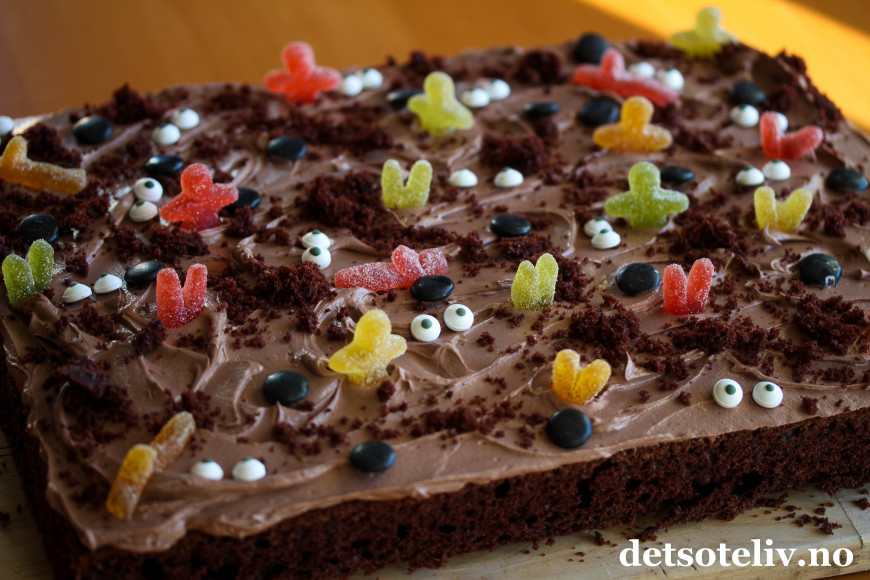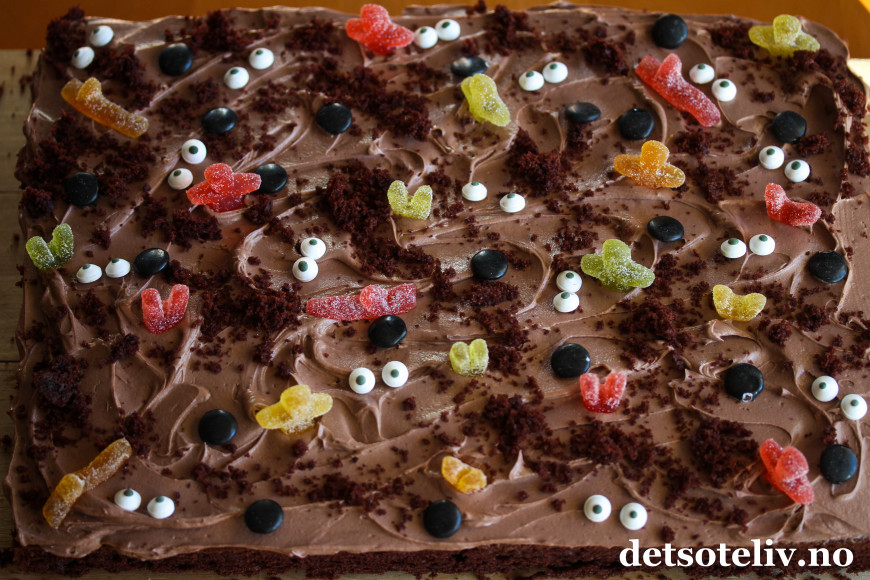 Det går raskt å lage en sjokoladekake i langpanne til Halloween!