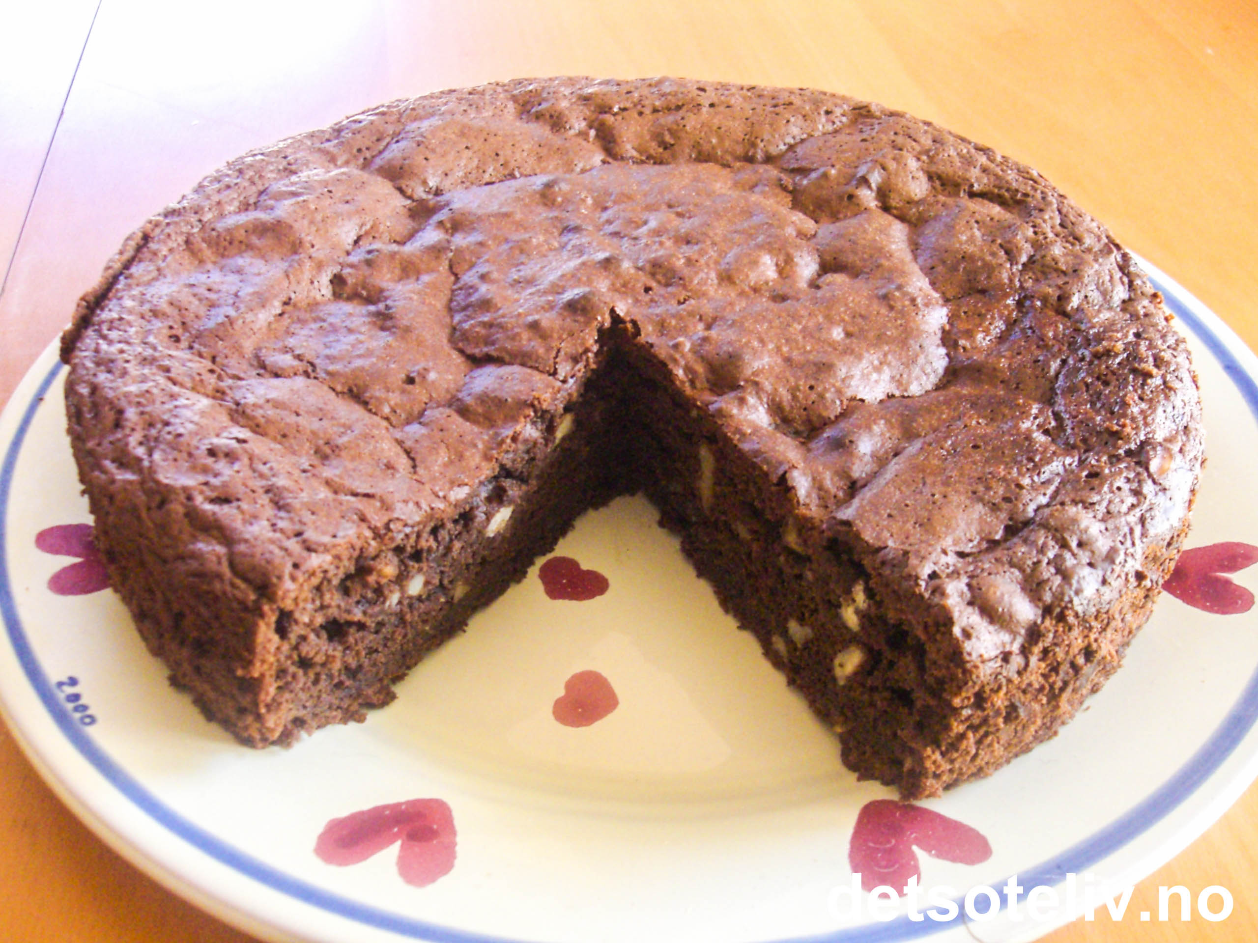 Hell røren i en rund kakeform (22 cm i diameter) med bakepapir i bunnen. Stek kaken på rist midt i ovnen ved 180°C i ca 30-40 min (sjekk med kakenål at kaken er gjennomstekt). Avkjøl kaken i formen før du tar den ut og fjerner bakepapiret.