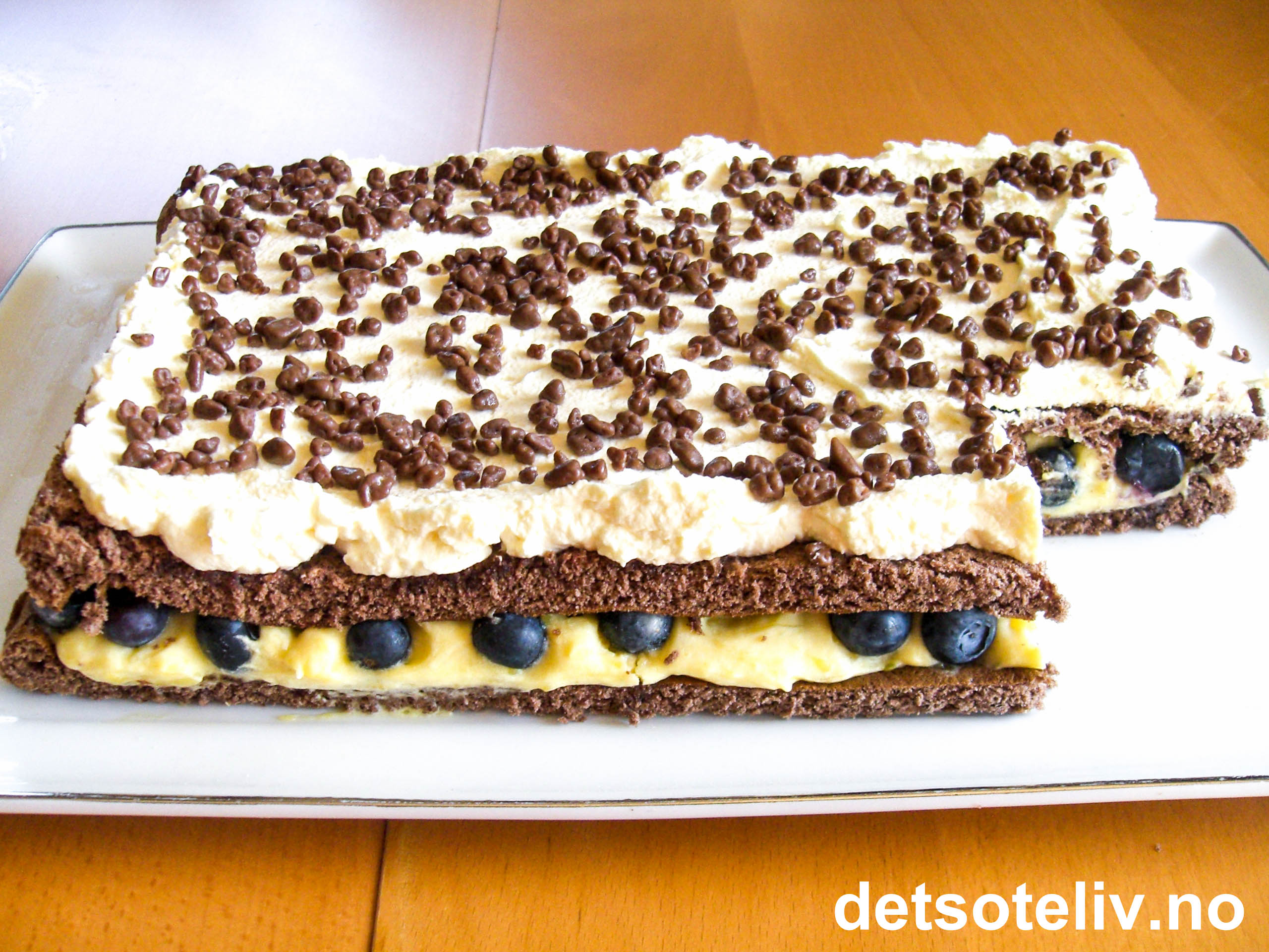 Blåbærene kan byttes ut med bringebær og/eller jordbær. Bruk helst friske bær, da frosne kan bli for rennende når de tiner.