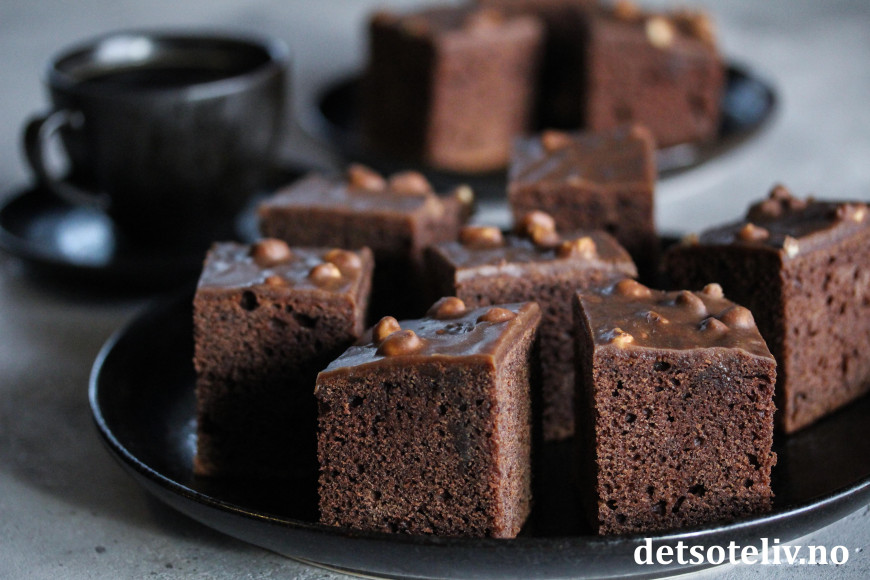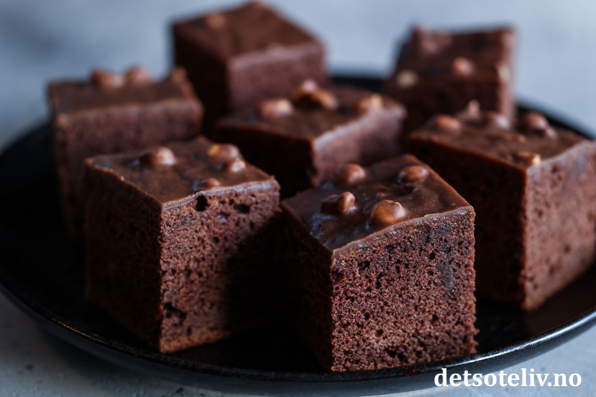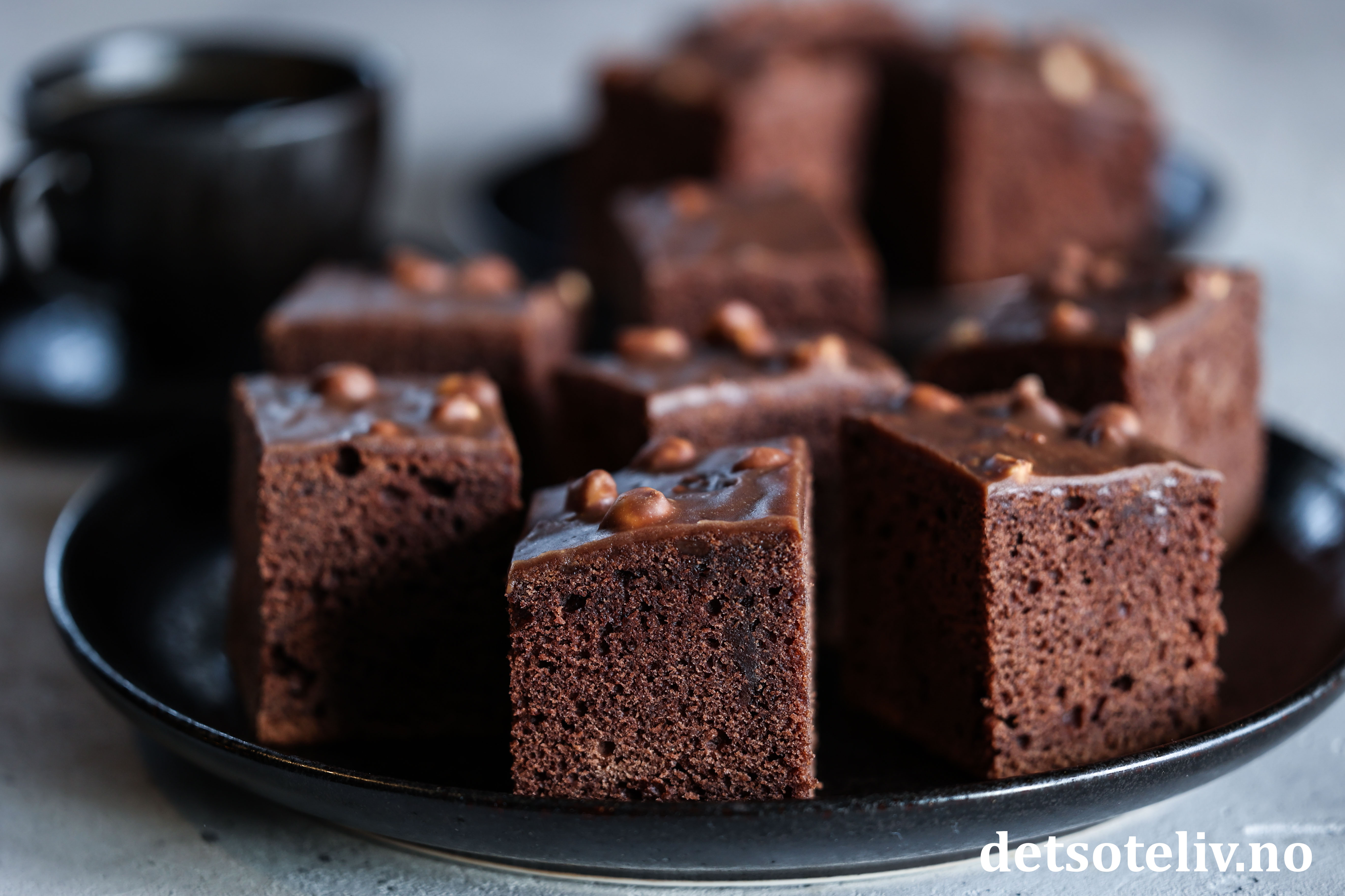 Stek kaken midt i ovnen ved 180°C i ca. 35 - 40 minutter (sjekk med kakenål at kaken er gjennomstekt, se tips).