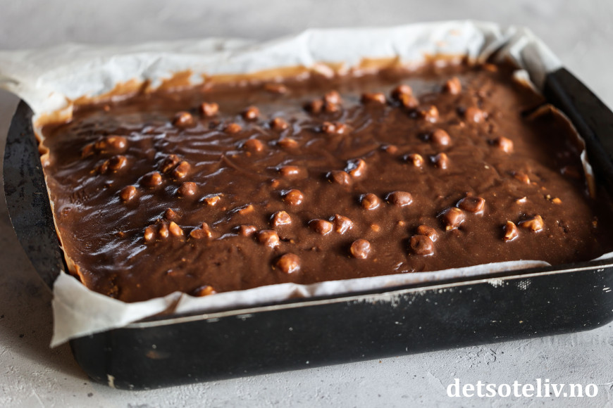 Ha deigen i en liten, bakepapirkledd langpanne (ca. 20 x 30 cm).