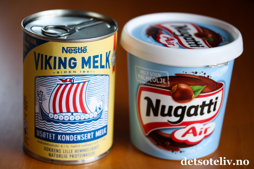 ♥ Jeg har her brukt Nugatti Air, som jeg synes har kjempefin og luftig konsistens. Du kan bruke vanlig Nugatti eller annet sjokoladepålegg hvis du foretrekker det.
