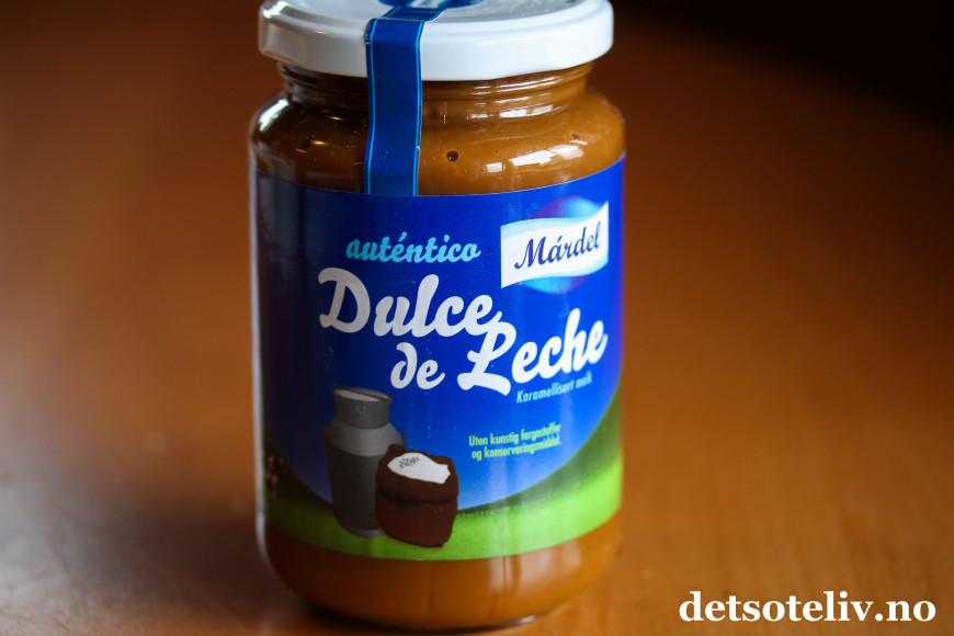 ♥ Dulce de leche er karamellisert melk som kjøpes på glass. Dette produktet er internasjonalt kjent og brukes mye i kaker og som pålegg. I Norge kjenner vi dette produktet under merket HaPå. Jeg brukte her Dulce de leche som fås kjøpt hos Meny.