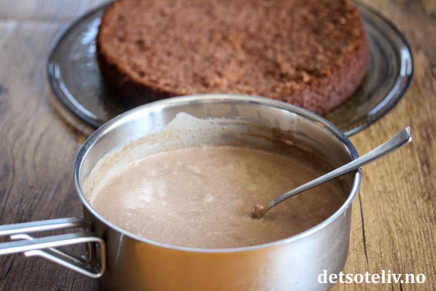 Start gjerne kvelden i forveien med å lage både kakebunnen og å forberede melkesjokoladekremen: