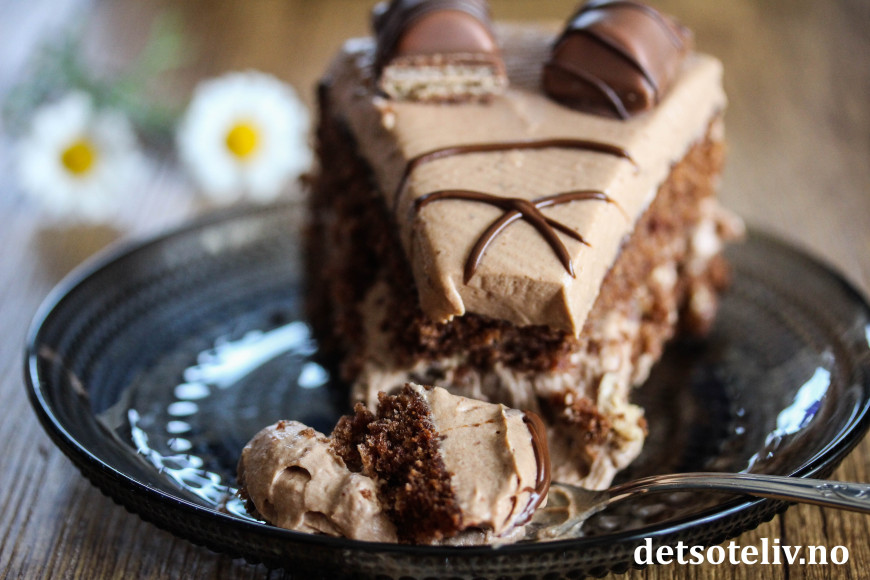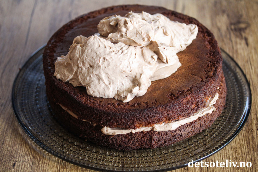Det fine med denne sjokoladekaken er at både kaken og sjokoladekremen er så luftig i konsistensen, som gjør at kaken blir mindre mektig enn mange andre sjokoladekaker.