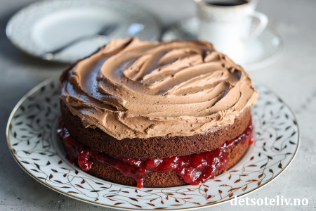 Kaken kan med fordel stå og trekke i et par timer før servering.