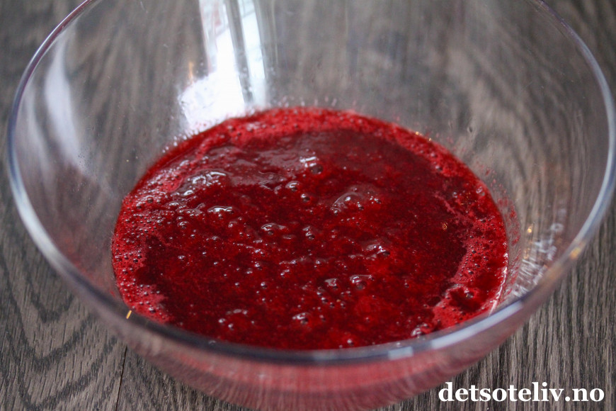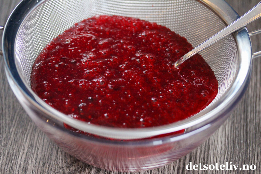 Press blandingen gjennom en sikt slik at frøene fra bærene fjernes.