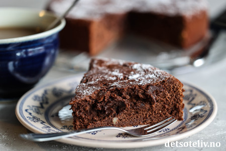 Ja, det ER faktisk mulig å lage en lett og mager sjokoladekake, som likevel er KJEMPEGOD! Denne sjokoladekaken er myk og litt fuktig i konsistensen og har nydelig sjokoladesmak. Du kan tilsette litt hakkede valnøtter hvis du ønsker. Se også oppskrift på "Konfektkake med kesam".