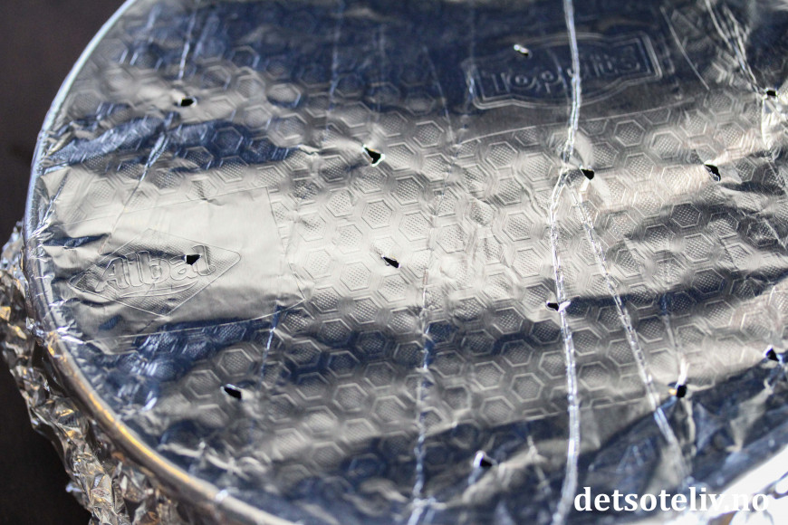 Bruk en kakepinne til å stikke noen små hull i aluminiumsfolien (se tips).