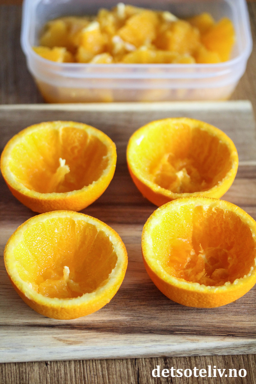 La det gjerne være litt appelsinkjøtt igjen langsmed kantene og i bunnen.