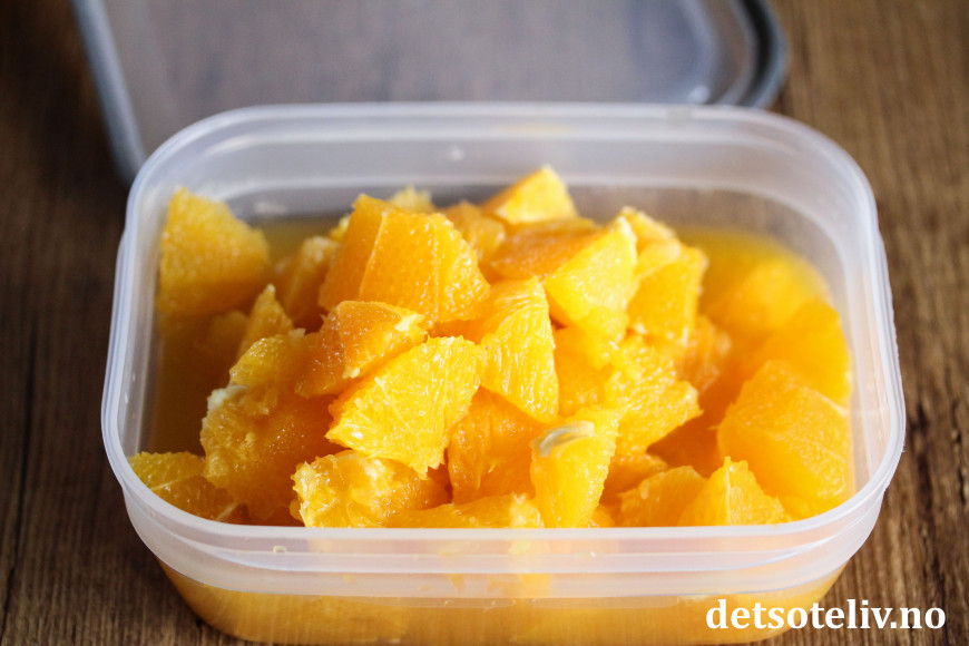 ♥ Ved uthuling av appelsinene bruker jeg en liten, skarp, taggete kniv. Jeg synes det er enklest å først skjære rundt langsmed skallet og deretter dele opp innholdet i fire. Så bruker jeg kniven til å skjære ut en og en bit av gangen.