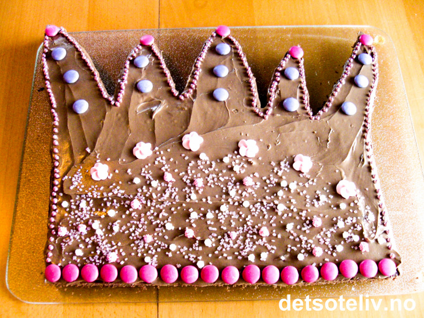 PS: Det er lov å jukse så lenge ingen ser deg; har du dårlig tid kan du lage "Sjokoladekakekrone" med sjokoladekake laget av kakemikspulver og ferdigkjøpt sjokoladekrem på boks;-)