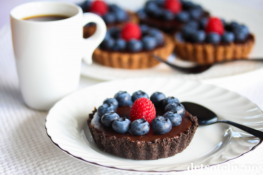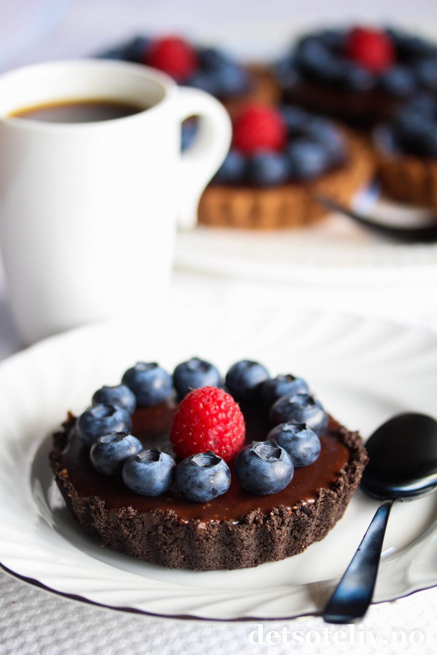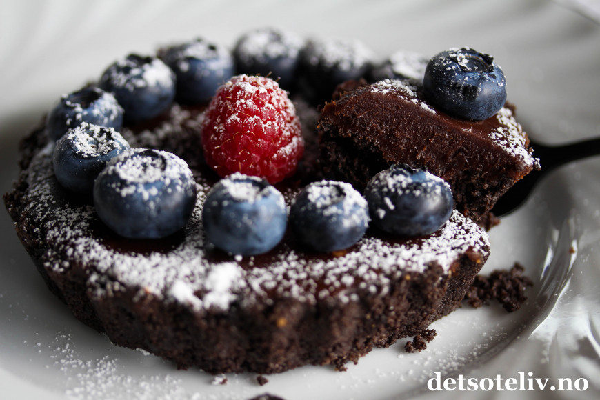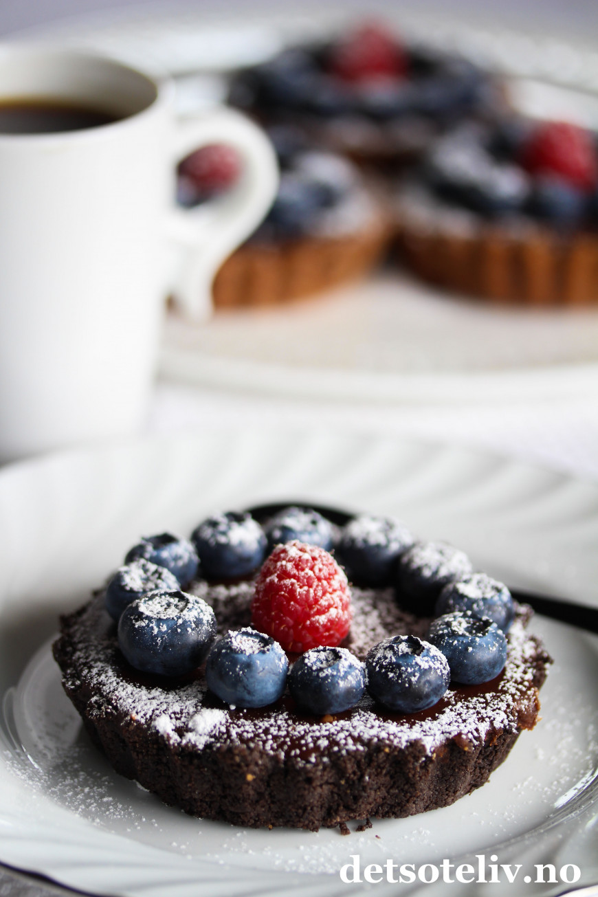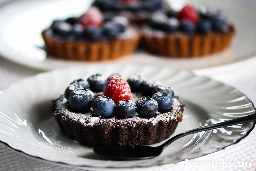 ♥ Sjokoladetertene kan også pyntes med andre typer bær. Vaniljeis eller pisket krem er nydelig som tilbehør.