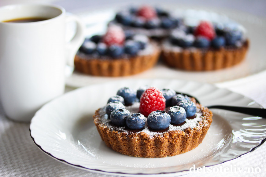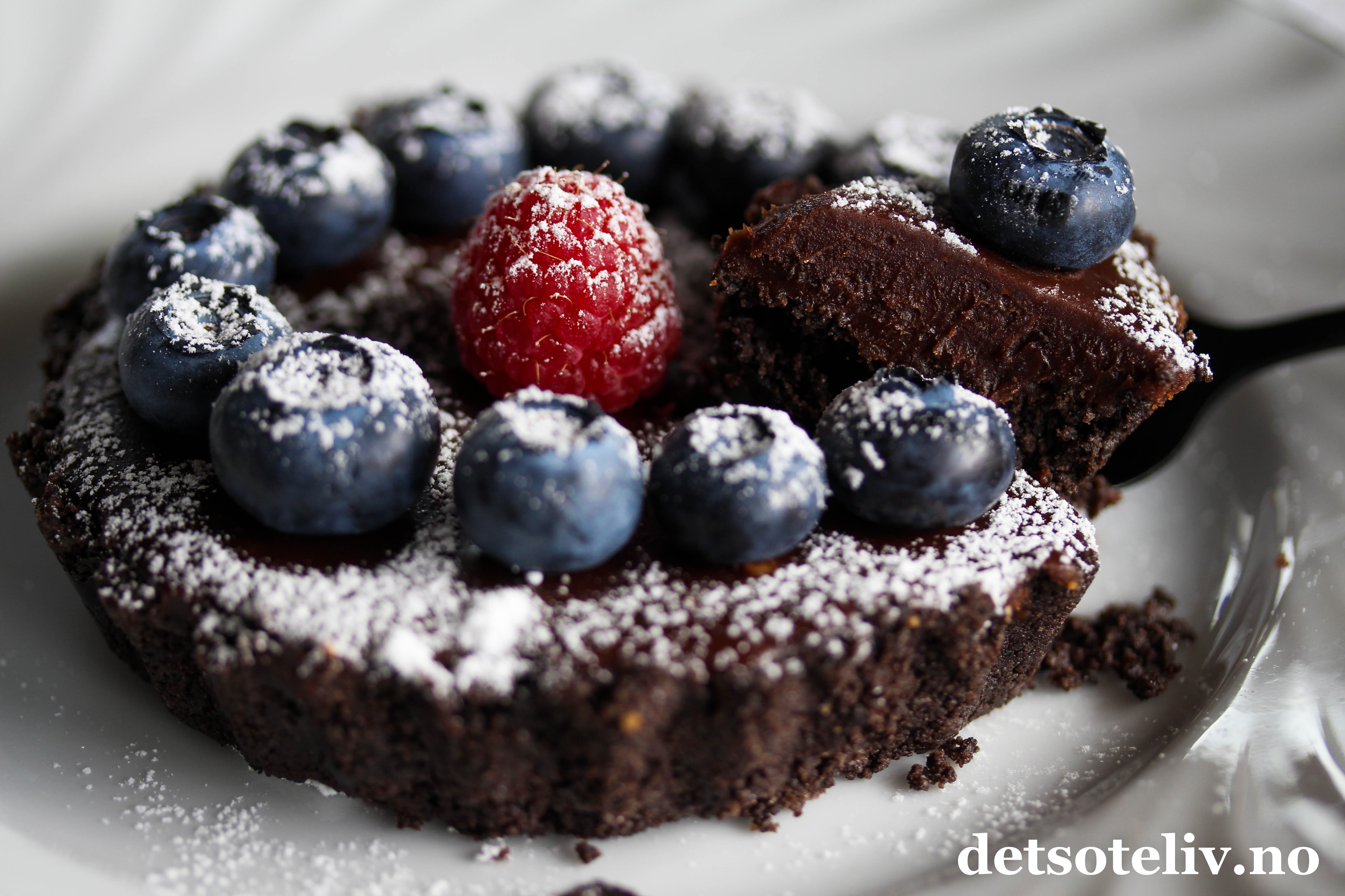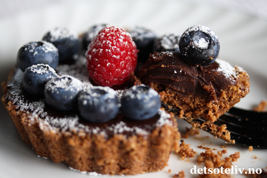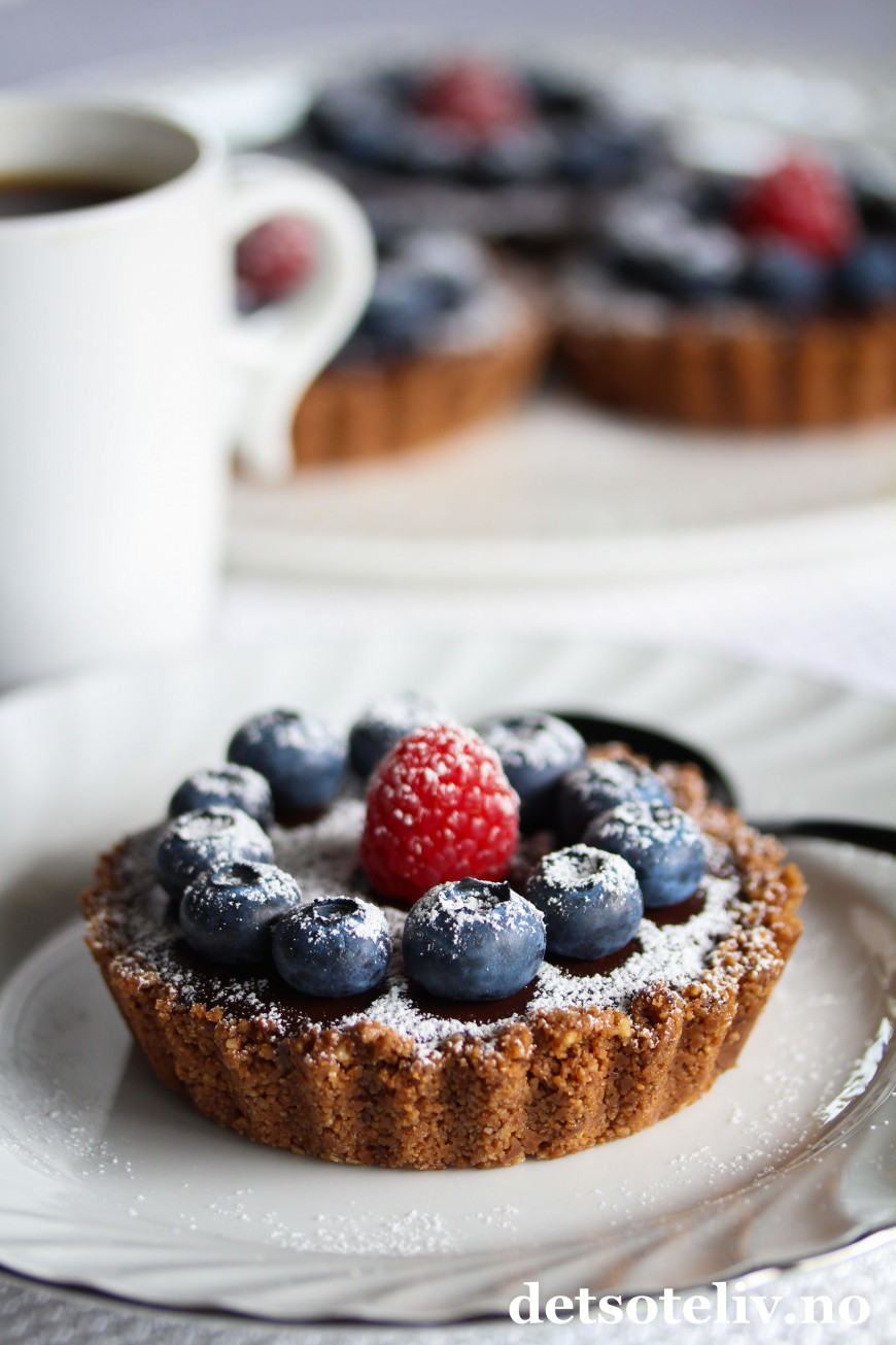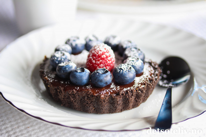 ♥ Sjokoladetertene kan også pyntes med andre typer bær. Vaniljeis eller pisket krem er nydelig som tilbehør.