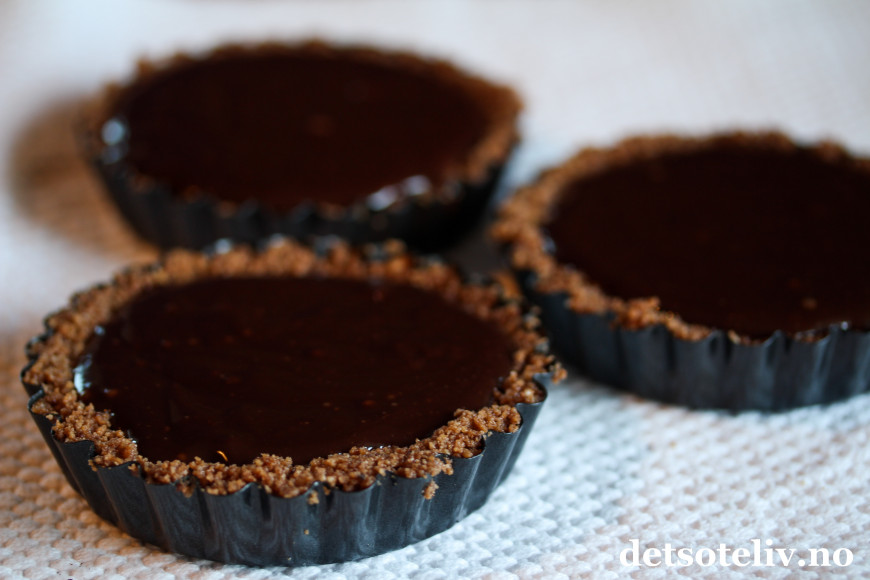 I forlengelsen av det forrige innlegget mitt der jeg lagde Sjokoladeterter med bringebær med terteformer i porsjonsstørrelser, som du blant annet får kjøpt i nettbutikken til slikkepott.no (se her), vil jeg i dag vise dere hvordan man enda enklere kan lage sjokoladeterter med kjeksbunn. Jeg bruker de samme formene, men det er ikke nødvendig å steke kakene.
