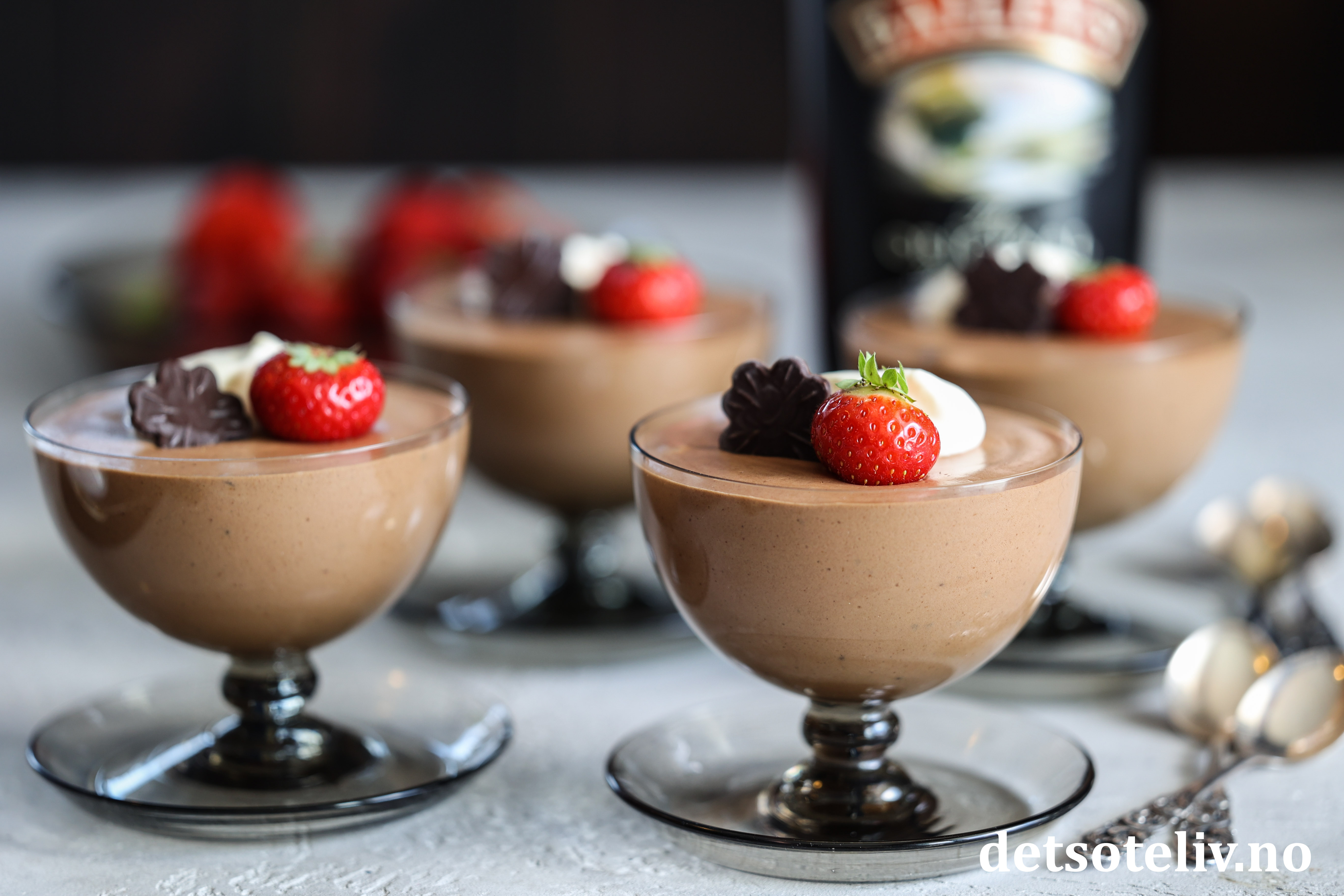 Anbefaler deg å nyte en luftig, kremete Sjokolademousse med Baileys, som rett og slett smelter på tungen. 😋