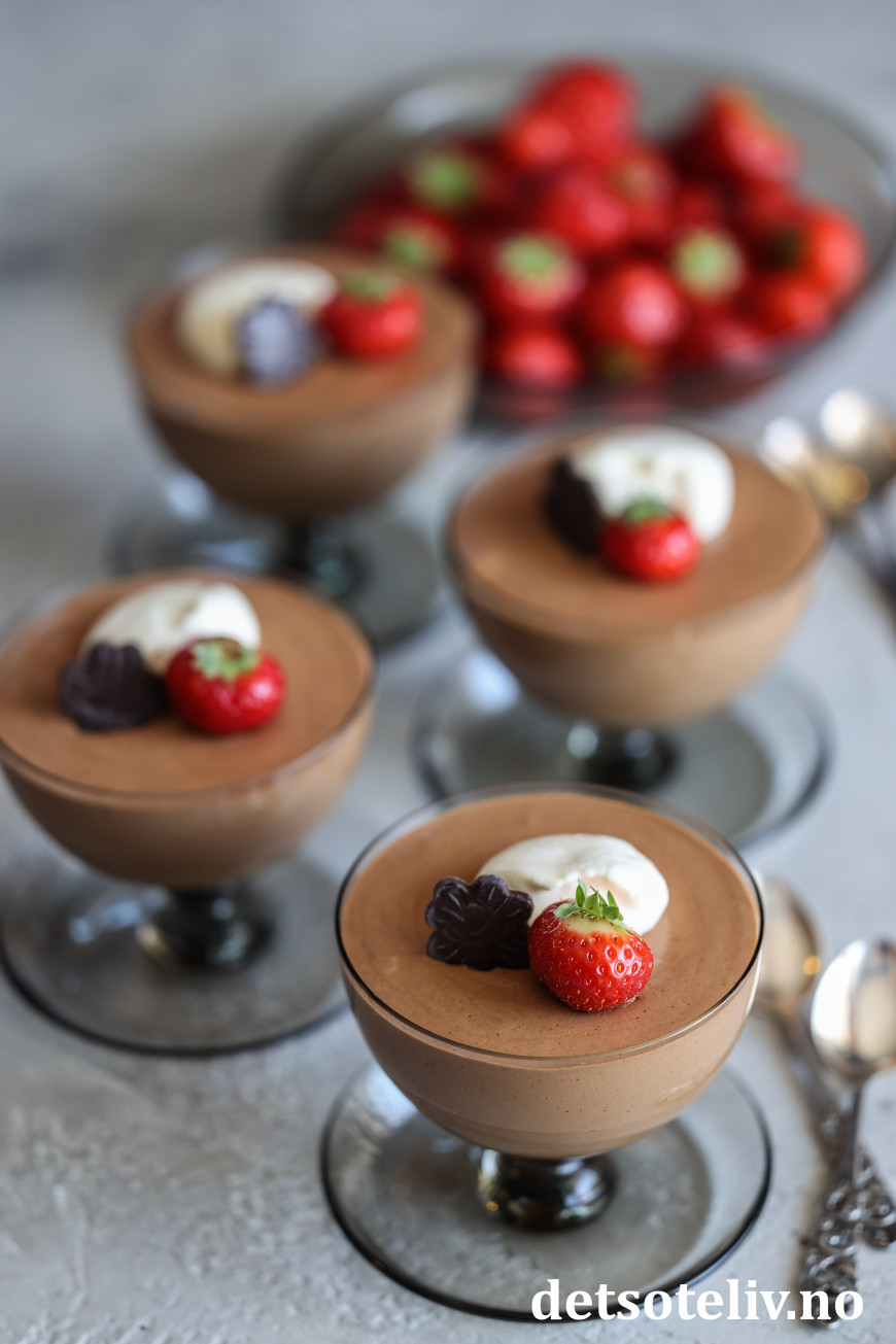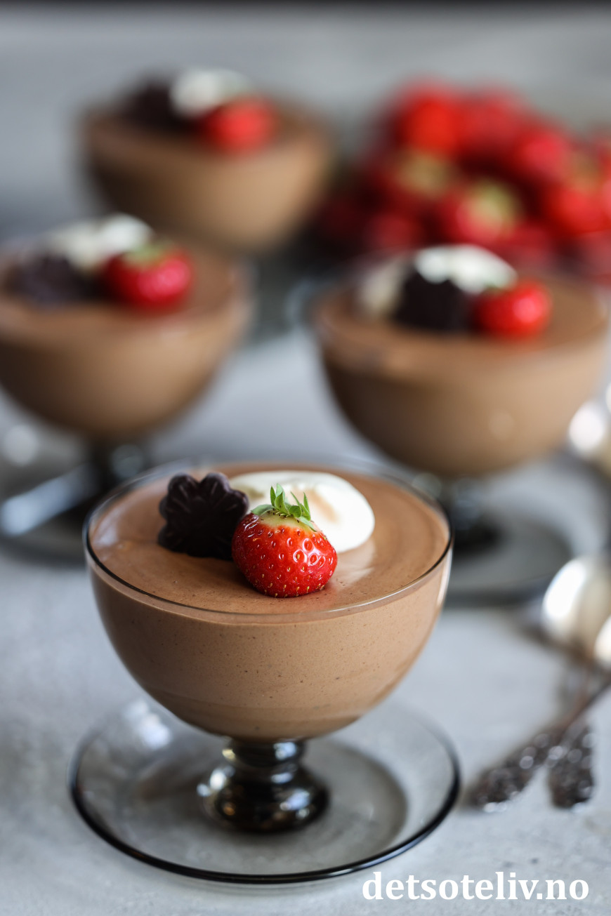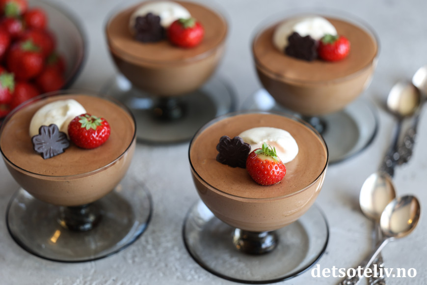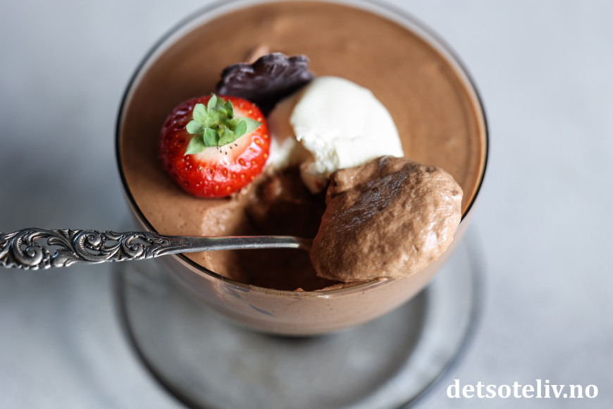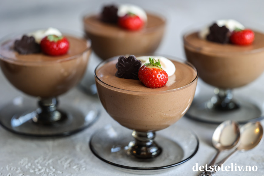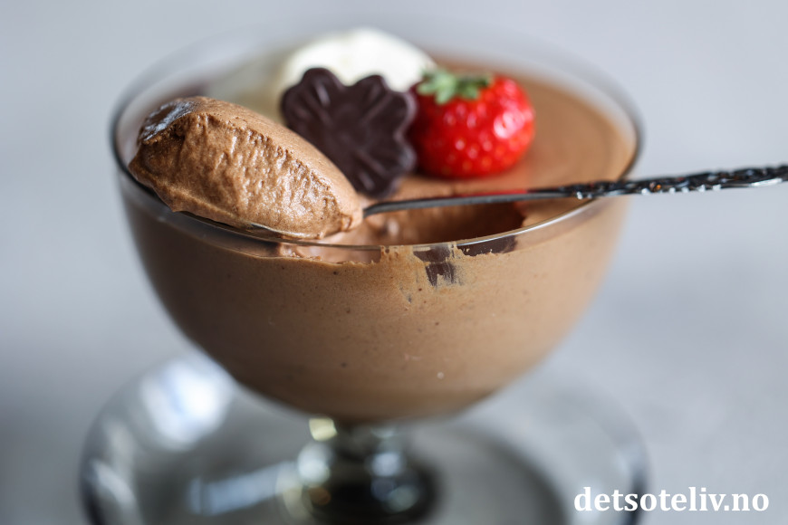 ♥ Sjokolademousse oppbevares i kjøleskapet frem til servering.