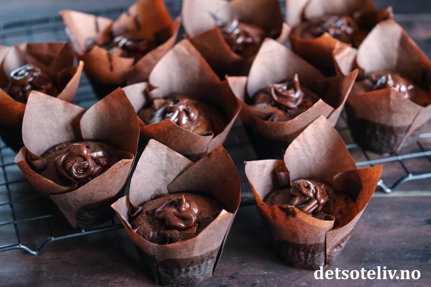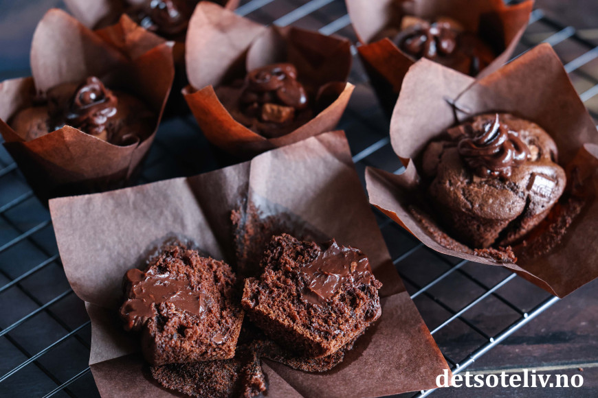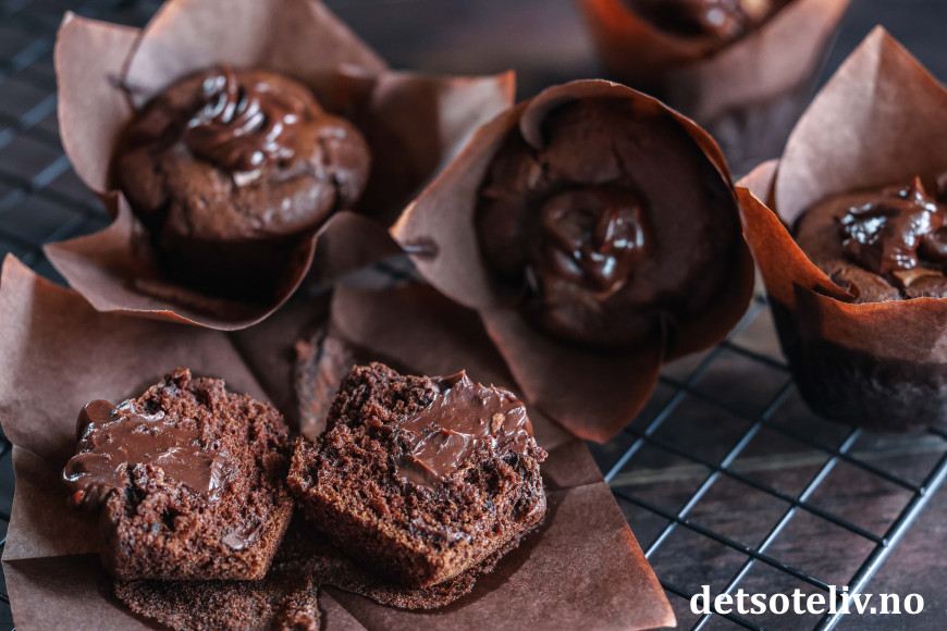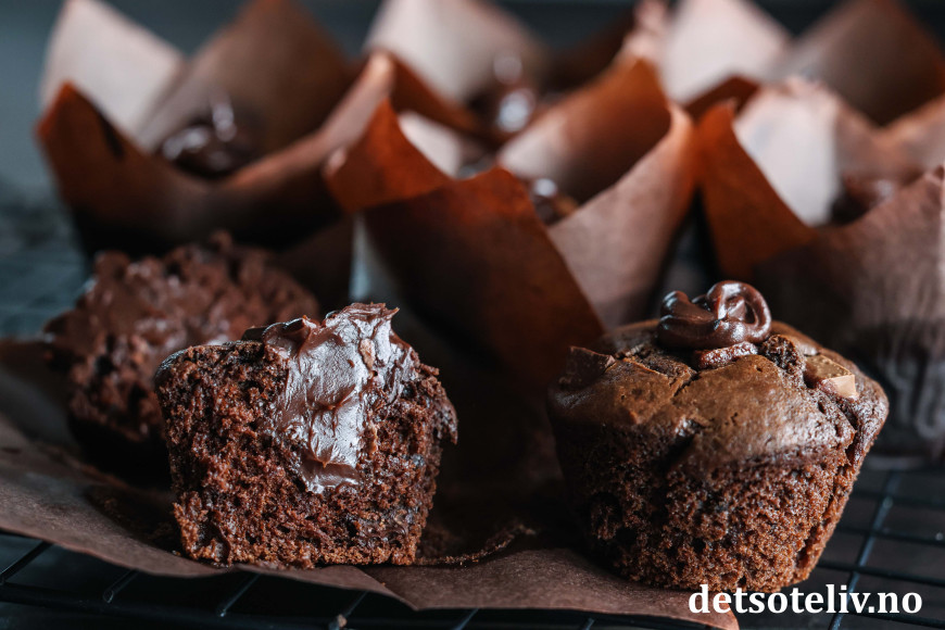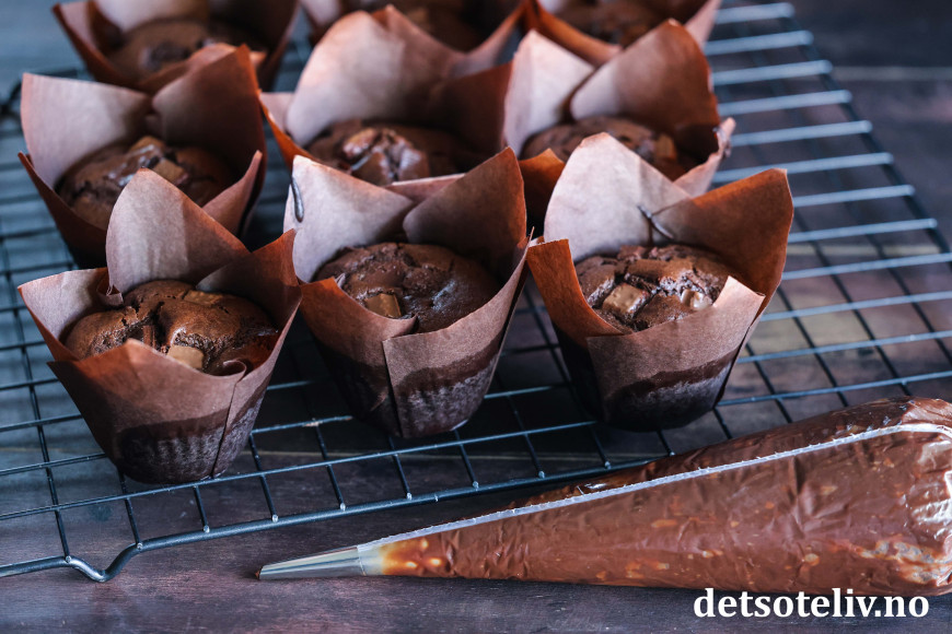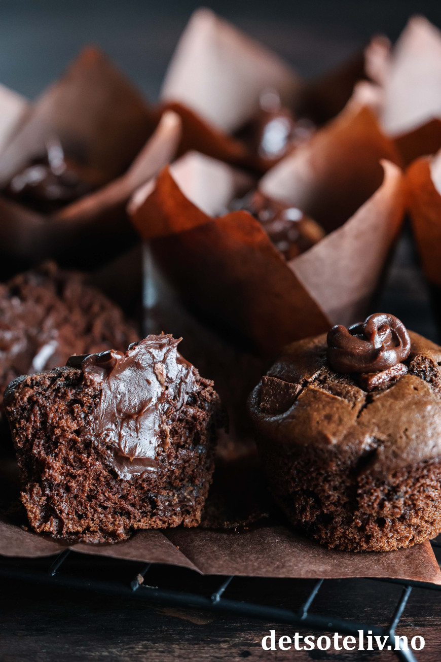 Store sjokolademuffins fylt med deilig sjokoladekrem!