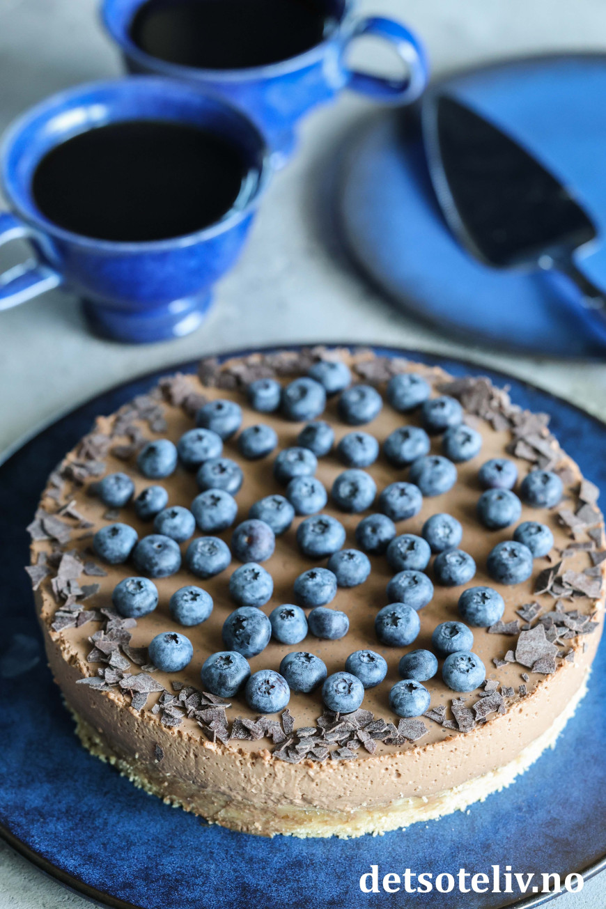 ♥ Som du ser har jeg valgt å pynte kaken med rikelige mengder blåbær. Jeg synes blåbær smaker veldig godt sammen med sjokoladen i denne kaken her. Men du kan selvsagt pynte med andre frisk bær også!