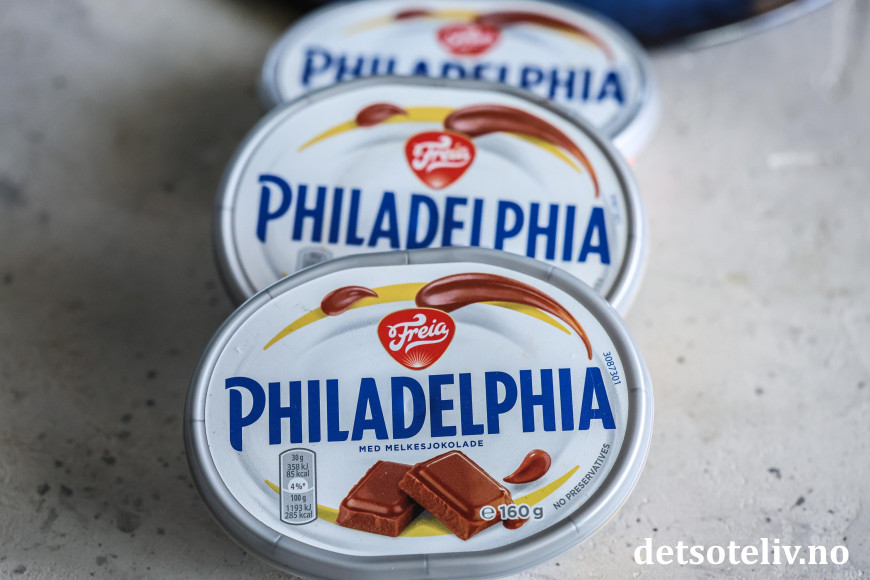 Kaken lages med kremost med herlig melkesjokoladesmak!