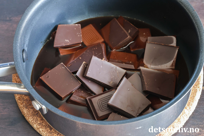 Varm opp på svak varme til du ser at sjokoladen har smeltet. Rør blandingen jevn.