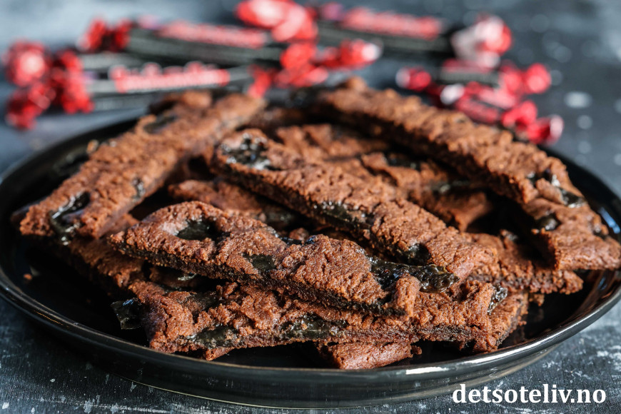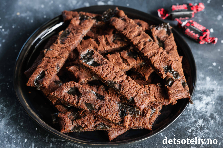 ♥ Se også oppskrift på Sjokoladesnitter og Seige sjokoladesnitter, som begge er uten lakris.