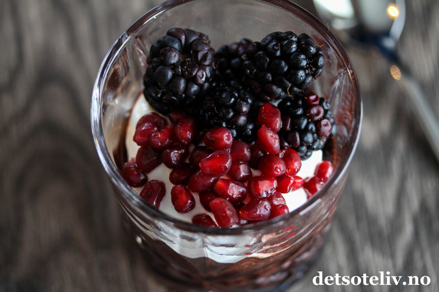 Jeg brukte her vaniljekesam, bjørnebær og granateplekjerner, men varier gjerne med ulike type bær, hakkede nøtter, hakket sjokolade, granola osv.