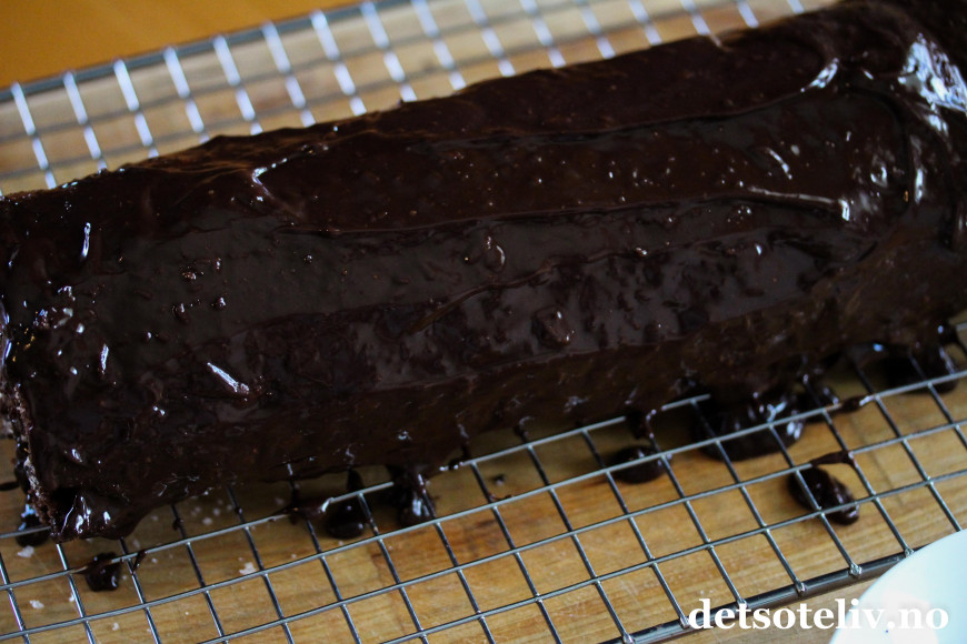 Prøv å få dekket kantene godt med sjokoladeglasur.