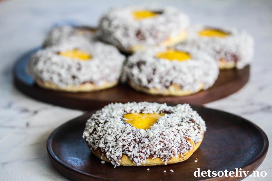 Stek bollene midt i ovnen ved 220°C i 10 minutter. Avkjøles helt.