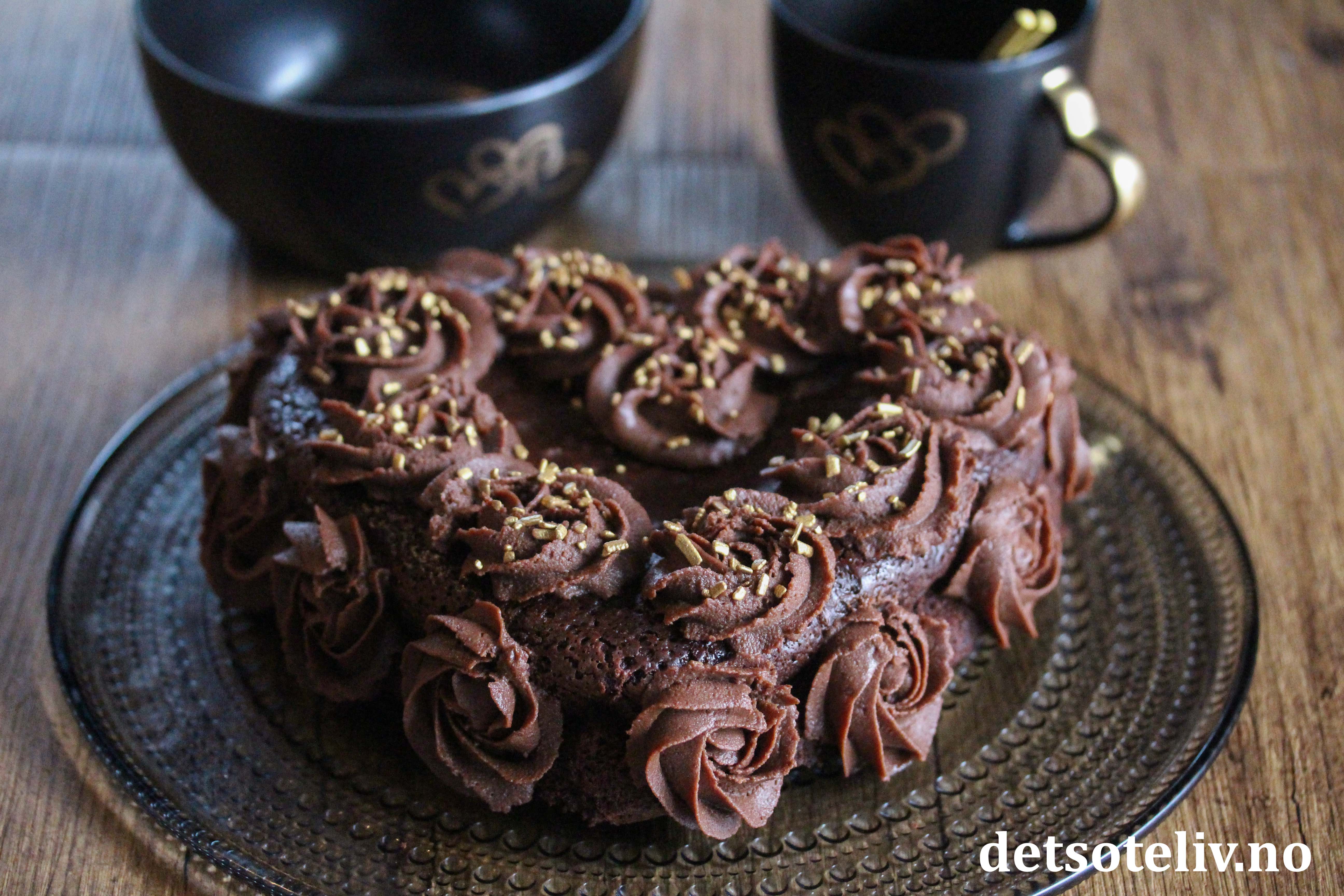Konfektkaken inneholder masse sjokolade og ikke noe hvetemel. Kan lages i hjerteform eller i rund form.