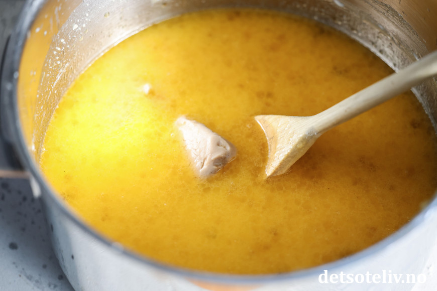 Kok opp melk, smør og melis. Avkjøl blandingen til den er lunken (fingervarm). Rør gjæren ut i væsken.