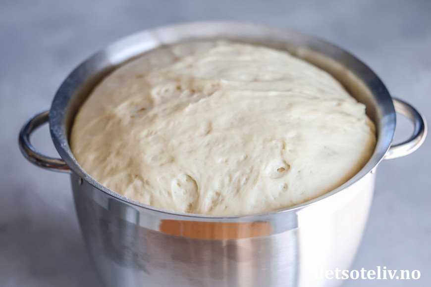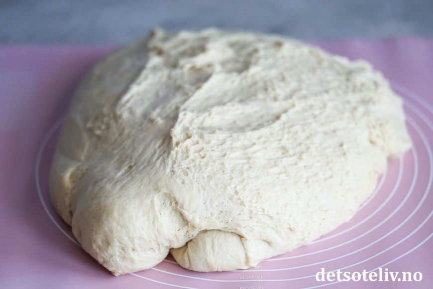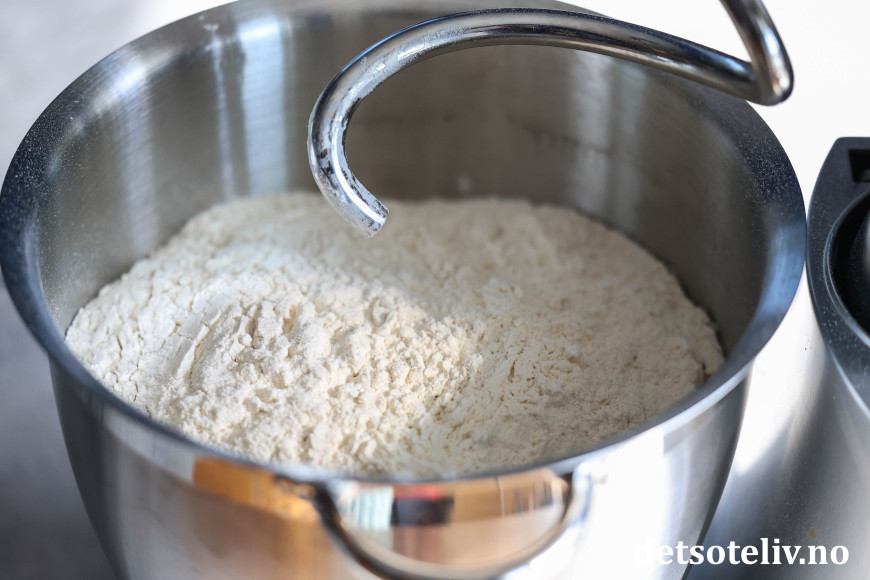Bruk eventuelt litt ekstra hvetemel dersom deigen fortsatt kjennes litt klissete ut.