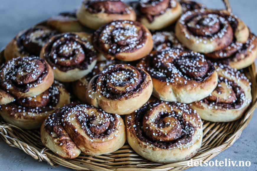 Det lukter nydelig av nystekte Sjokonøttboller på kjøkkenet!