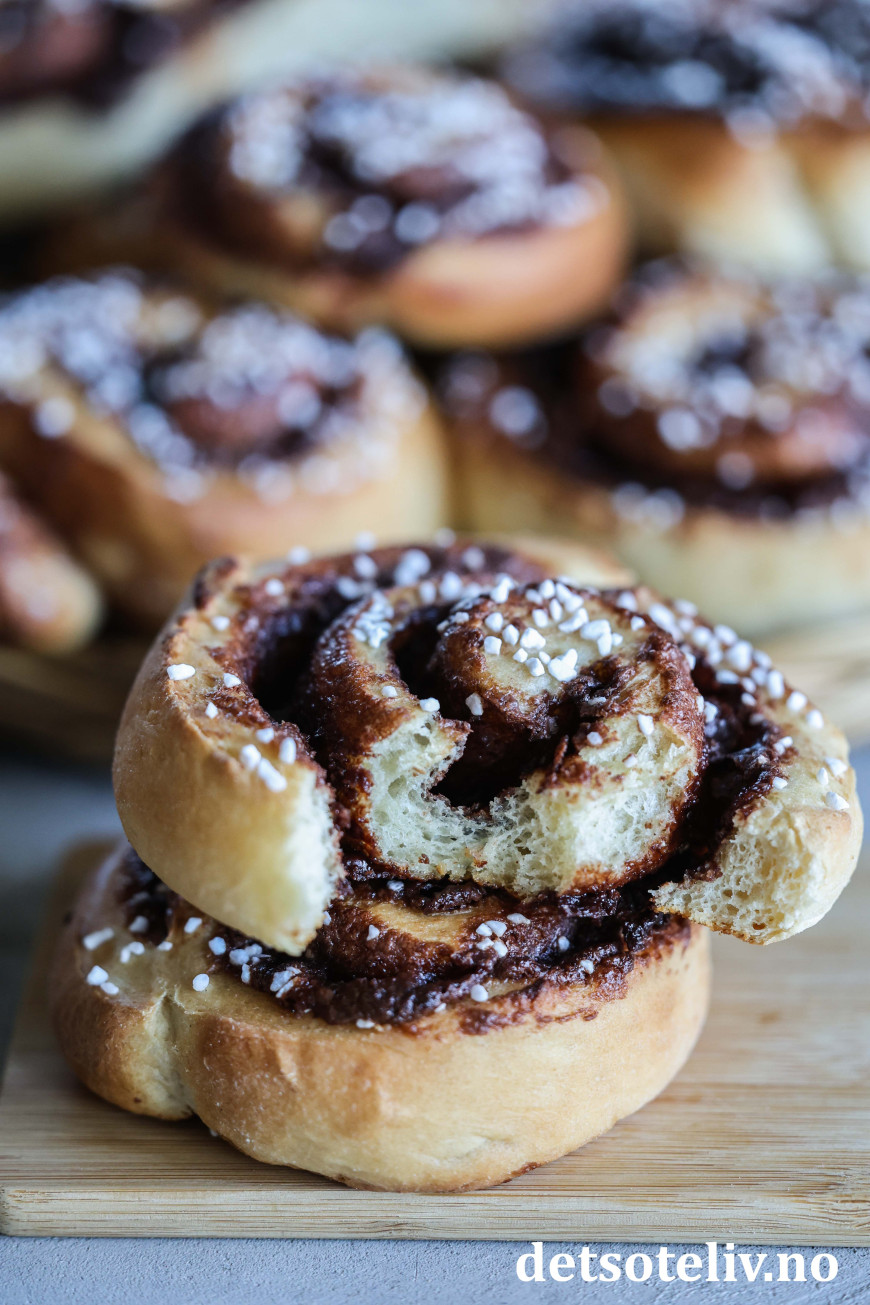 ♥ Jeg har her brukt samme type gjærdeig som til Verdens beste kanelboller. Du kan lage Sjokonøttboller med alle typer gjærdeiger, så bruk den gjærdeigen du liker best å bruke.