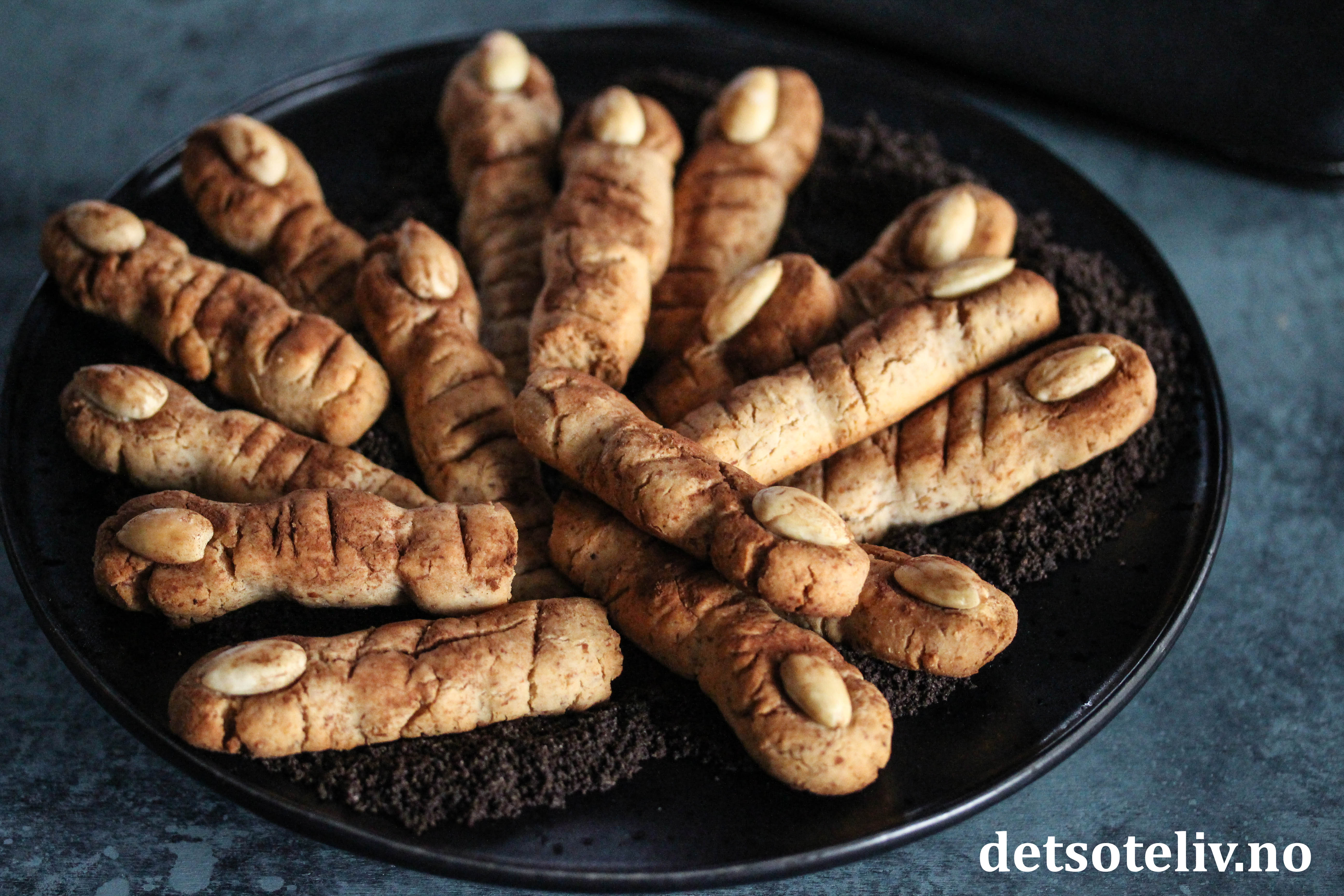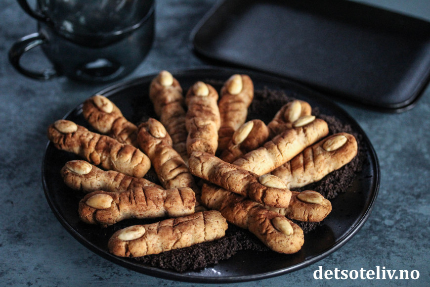 Skitne heksefingre ser ikke så veldig delikate ut, men det skal det jo heller ikke gjøre til Halloween. Til gjengjeld er de superraske å lage, og ikke minst kjempegode!