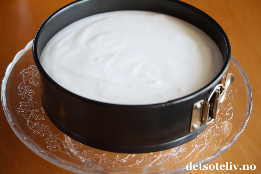 Ha marengsmassen i formen og glatt til overflaten. Sett fatet i kjøleskapet til skummet har stivnet.