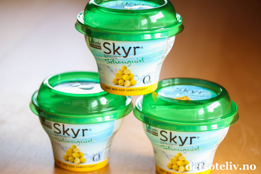 ♥ Til sitronfromasjen har jeg her brukt Skyr sitron (3 pk à 175 g).